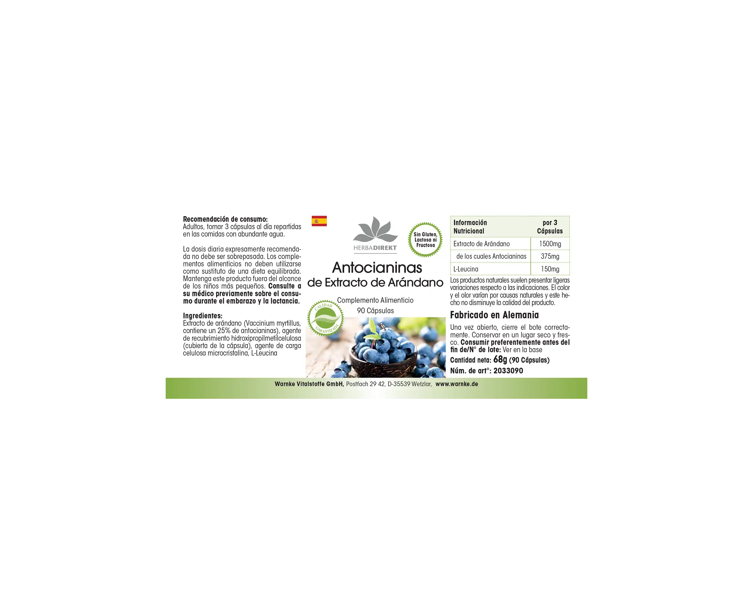 | Heidelbeerextrakt / Bilberry Extract / Extrait de Myrtille / Extracto de Arándano / Estratto di Mirtillo Nero / | 1500mg |