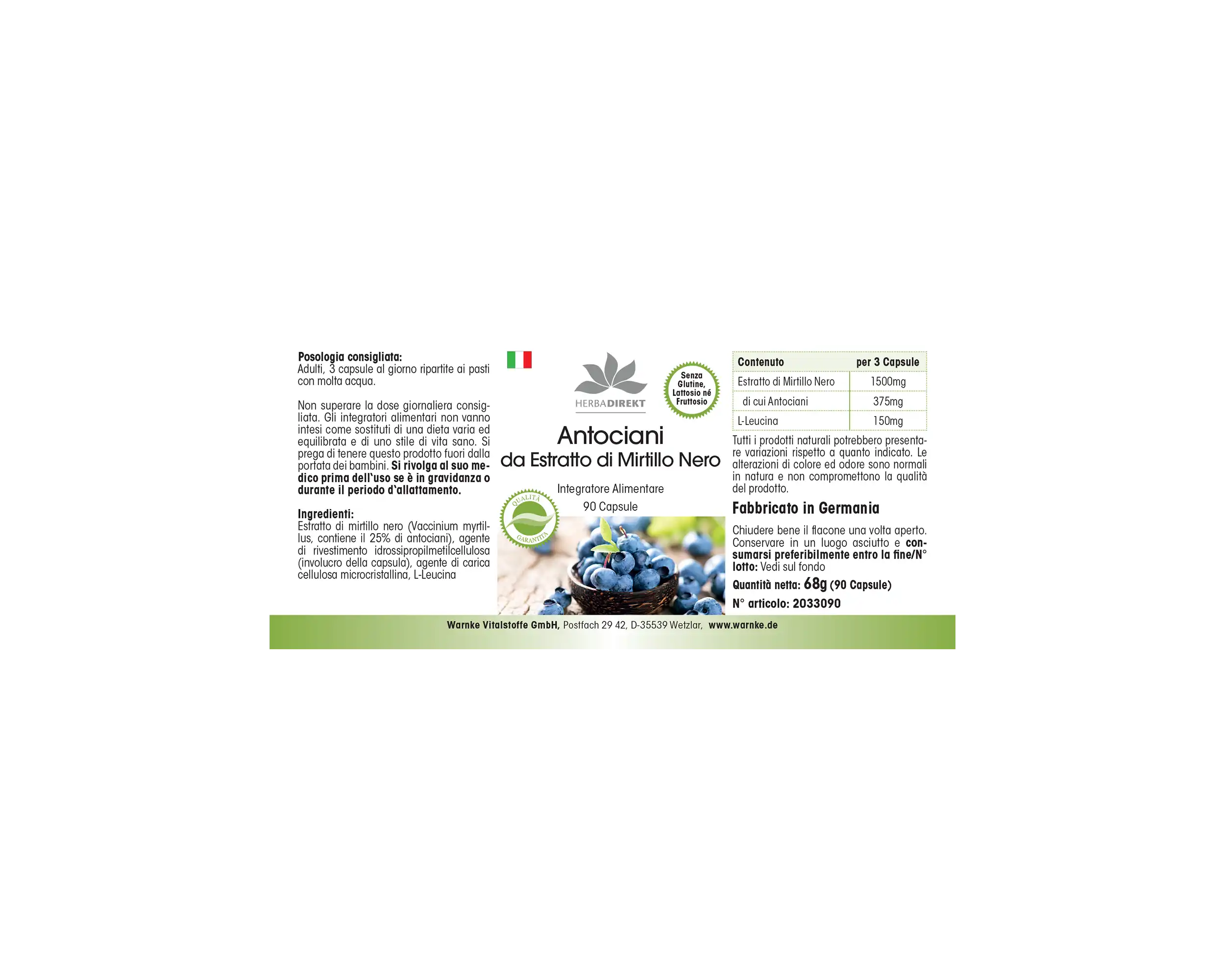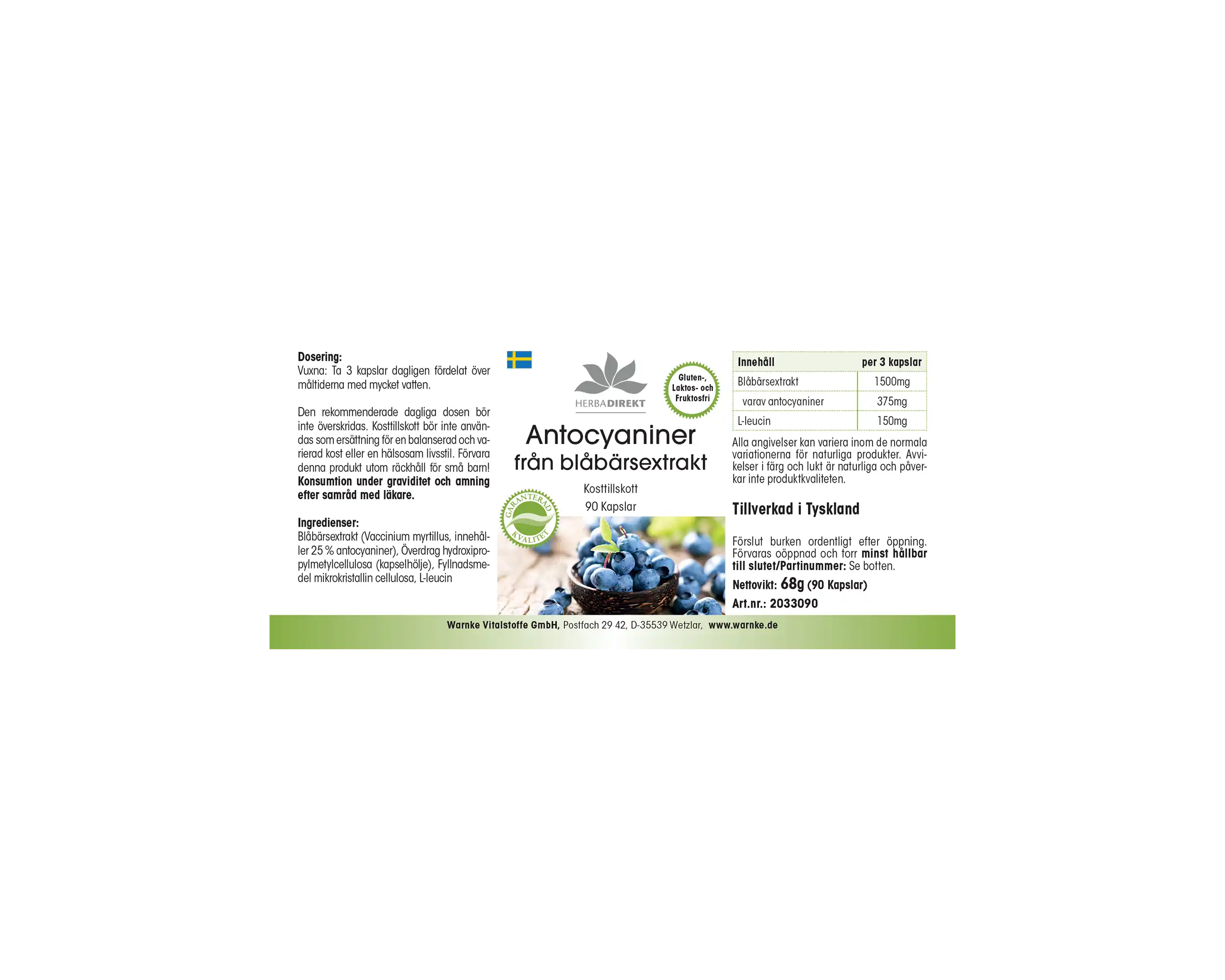 Produktinformationen "Anthocyane aus Heidelbeerextrakt - 90 Kapseln | Warnke Vitalstoffe"