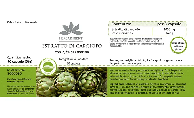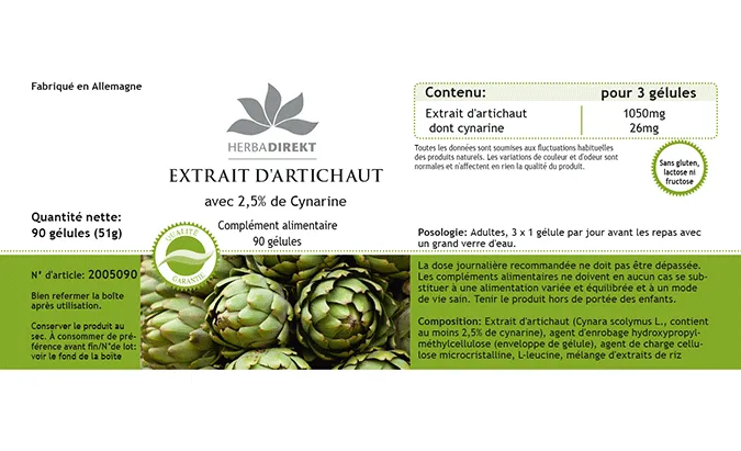 | Artischocken-Extrakt / Artichoke extract/ Extrait d'artichaut / Extracto de alcachofa / Estratto di carciofo | 1050mg |
