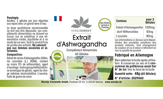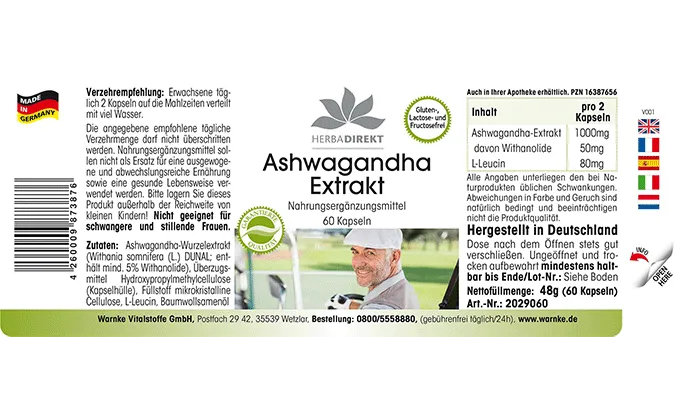 | Ashwagandha-Extrakt/ Ashwagandha extract/ Extrait d‘Ashwagandha / Extracto de Ashwagandha / Estratto di Ashwagandha | 1000mg |