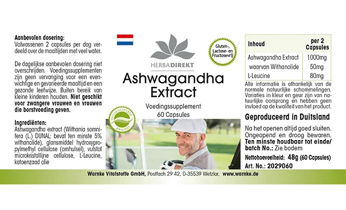 Produktinformationen "Ashwagandha-Extrakt 500mg - 60 Kapseln - Vegan | Warnke Vitalstoffe"
