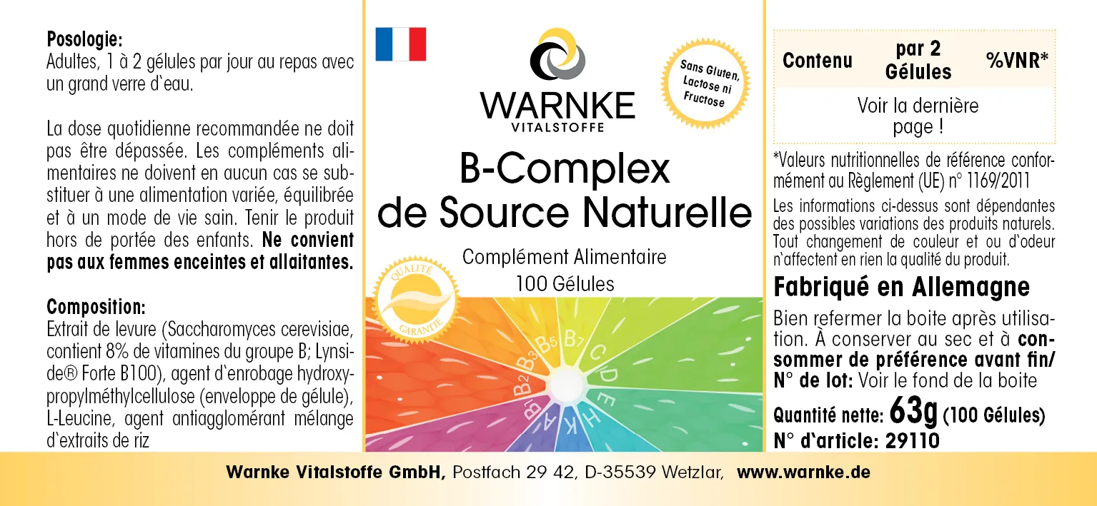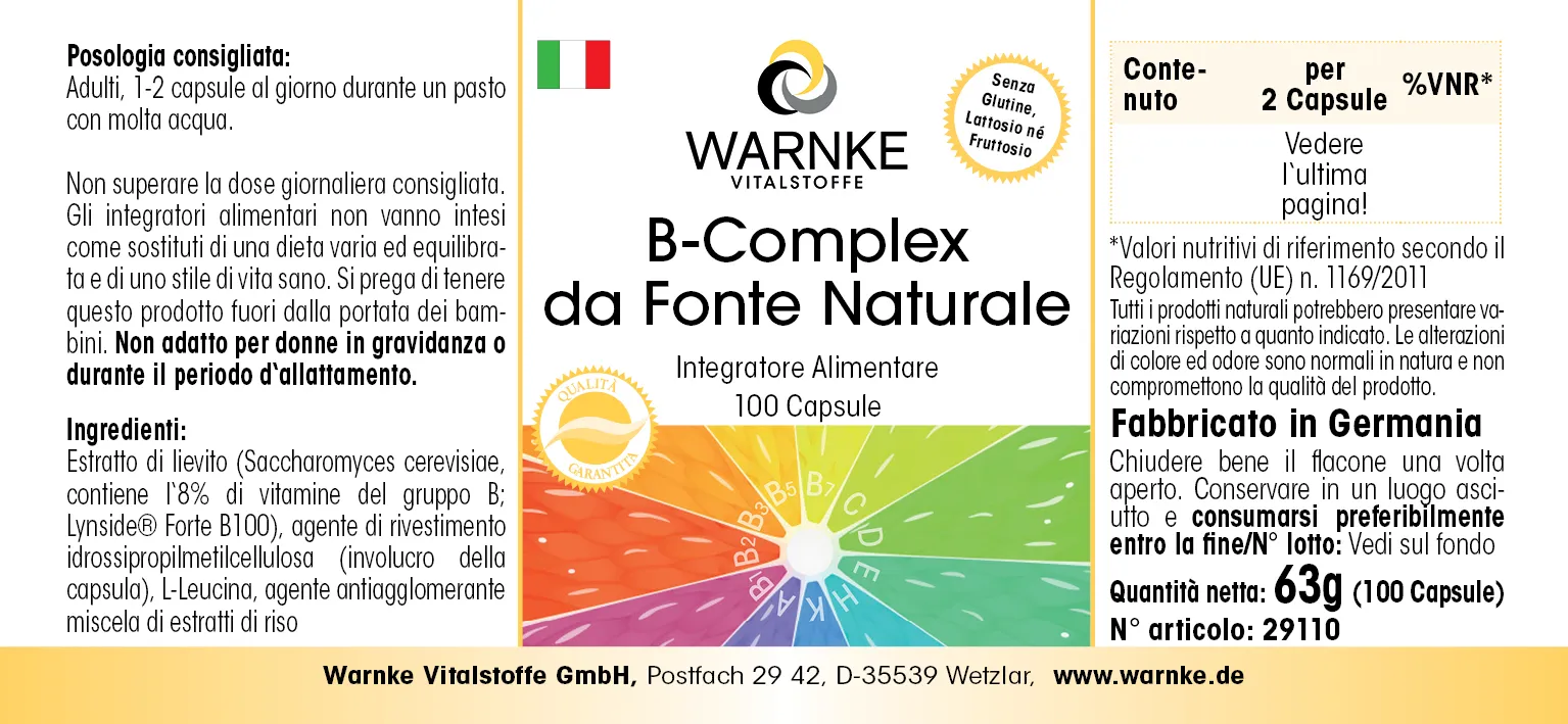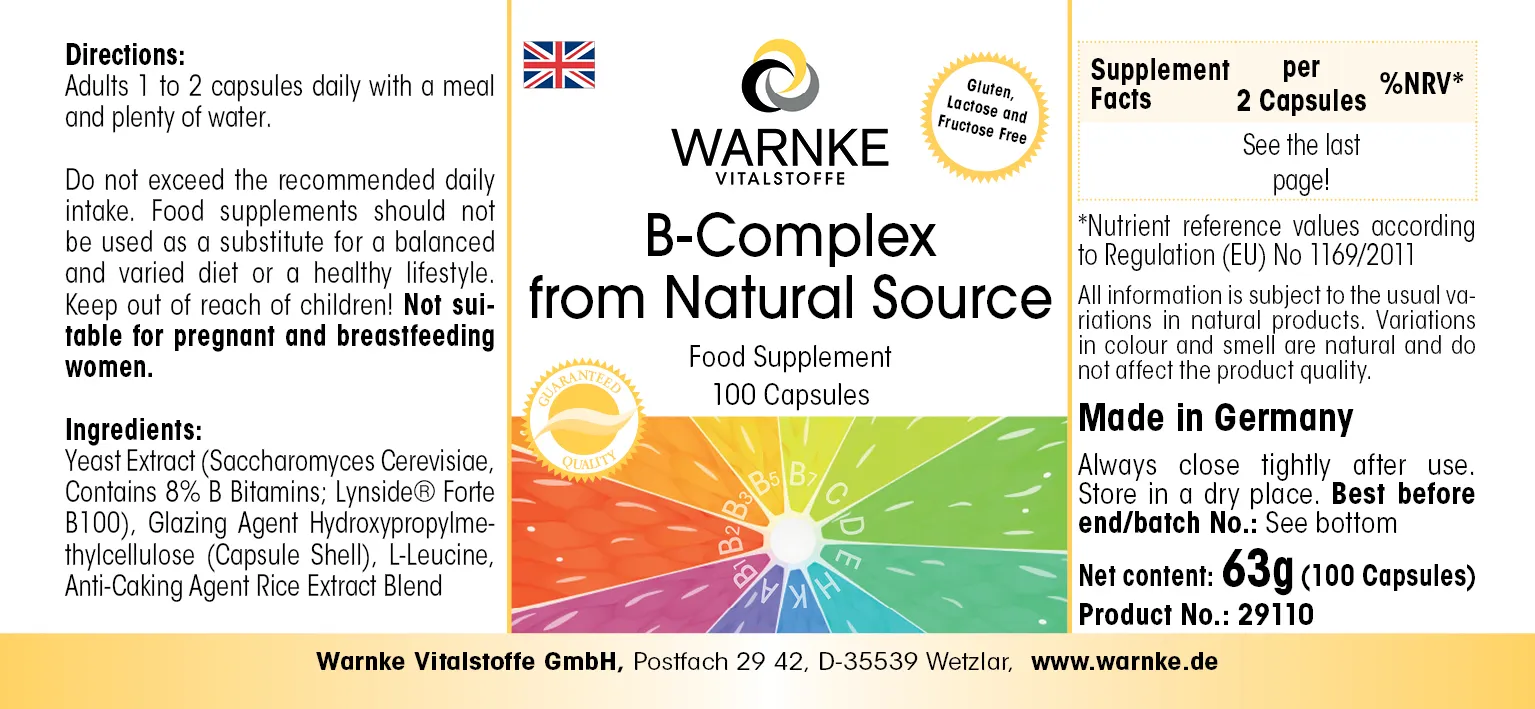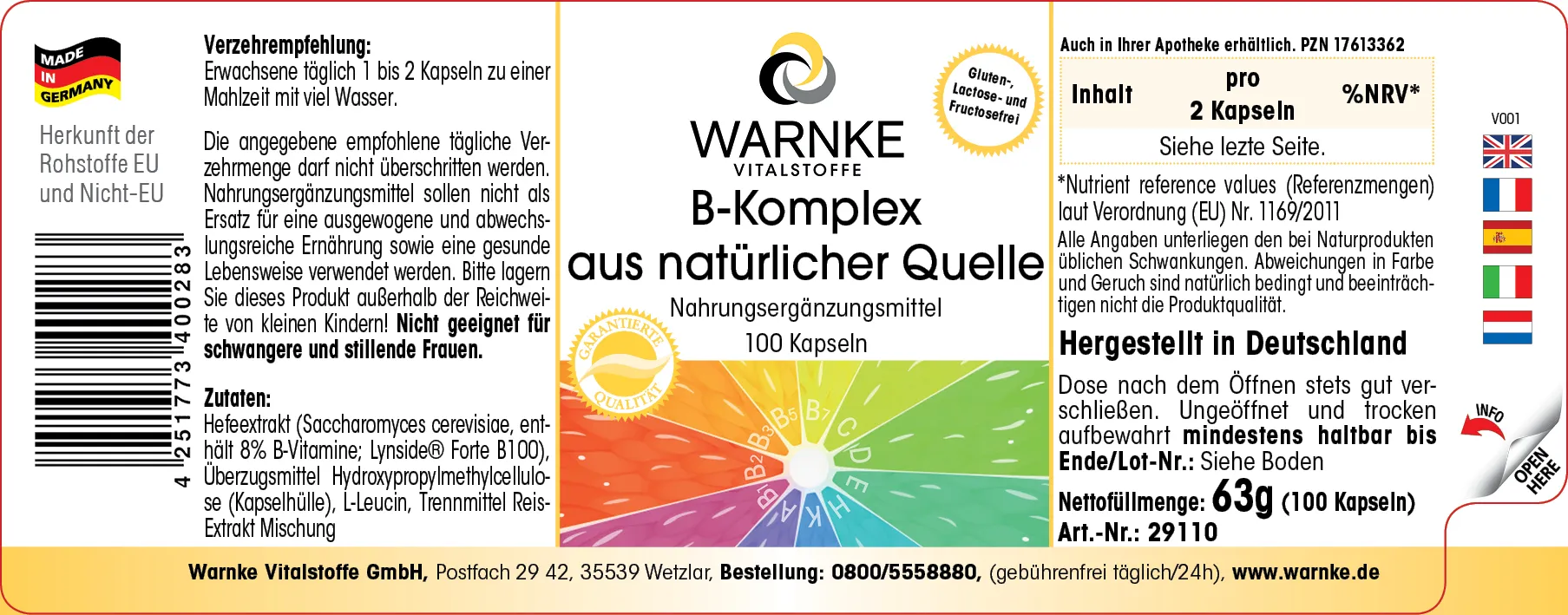 Produktinformationen "B-Komplex aus natürlicher Quelle - 100 Kapseln - mit Vitamin B12, Biotin uvm. - für Energie, Immunsystem uvm. | Warnke Vitalstoffe"