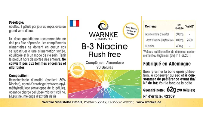 B3 Niacin Flush Free - 90 Kapseln - für Haut, Nervensystem uvm. | Warnke Vitalstoffe
