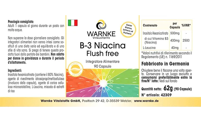 Produktinformationen "B3 Niacin Flush Free - 90 Kapseln - für Haut, Nervensystem uvm. | Warnke Vitalstoffe"