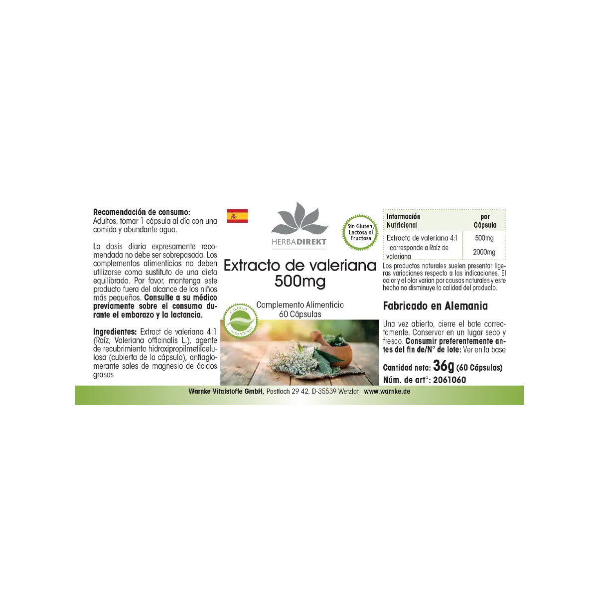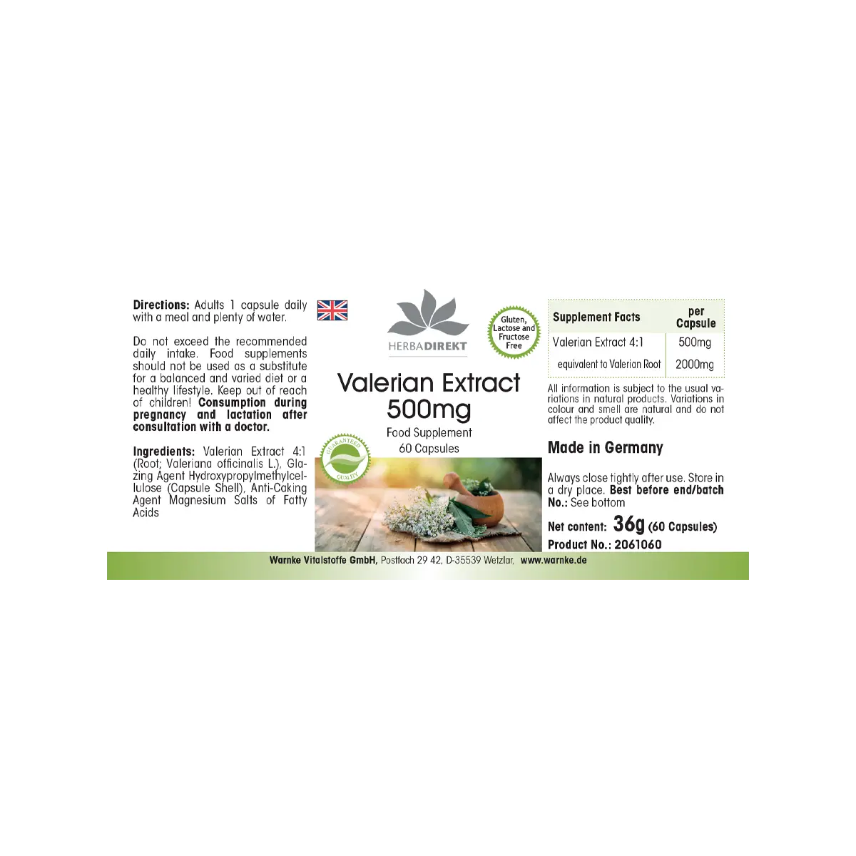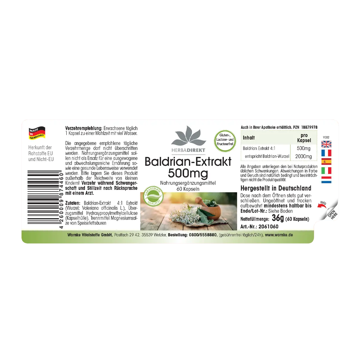 Produktinformationen "Baldrian Kapseln 500mg - 60 Kapseln - Hochdosiert & Vegan | Warnke Vitalstoffe"