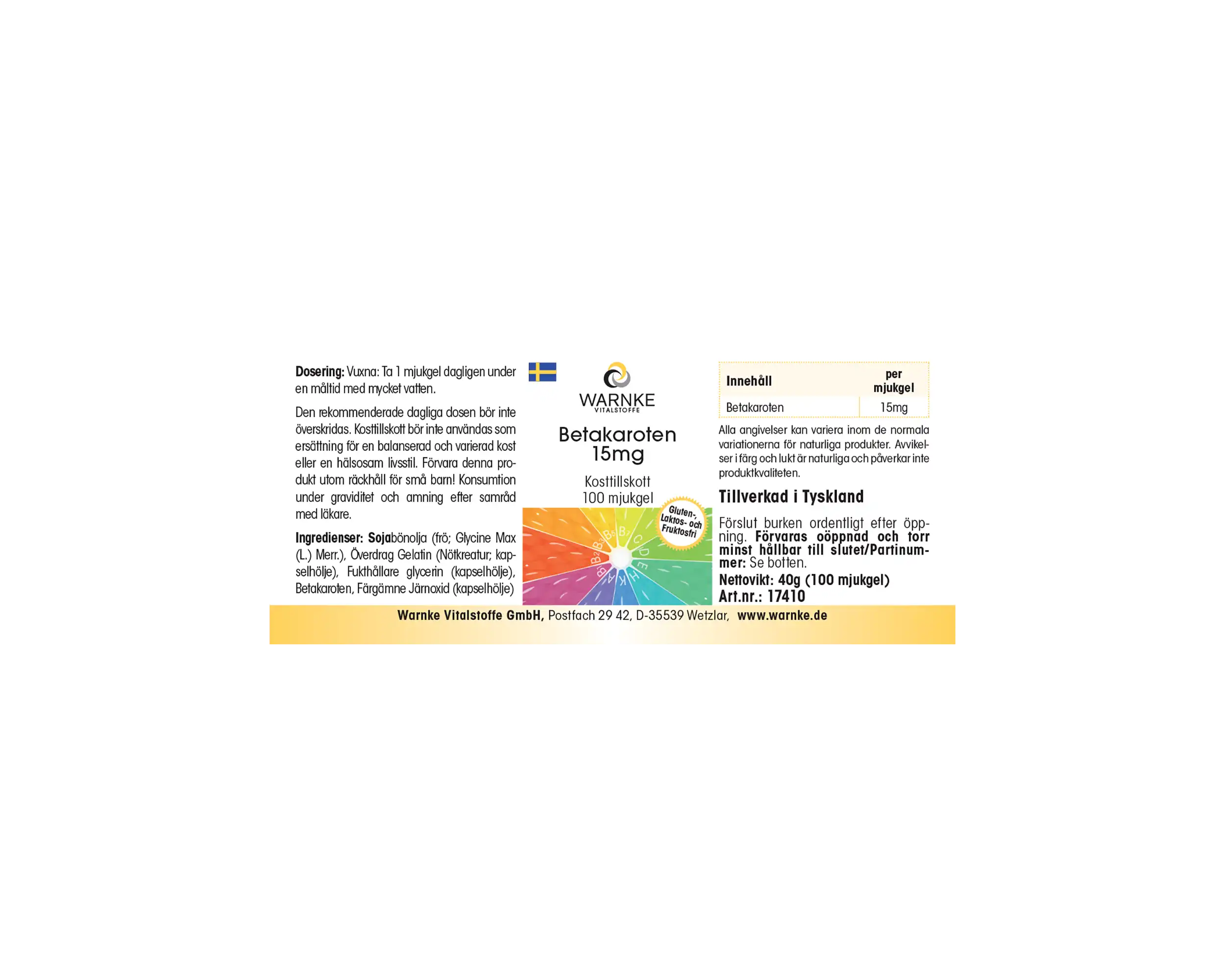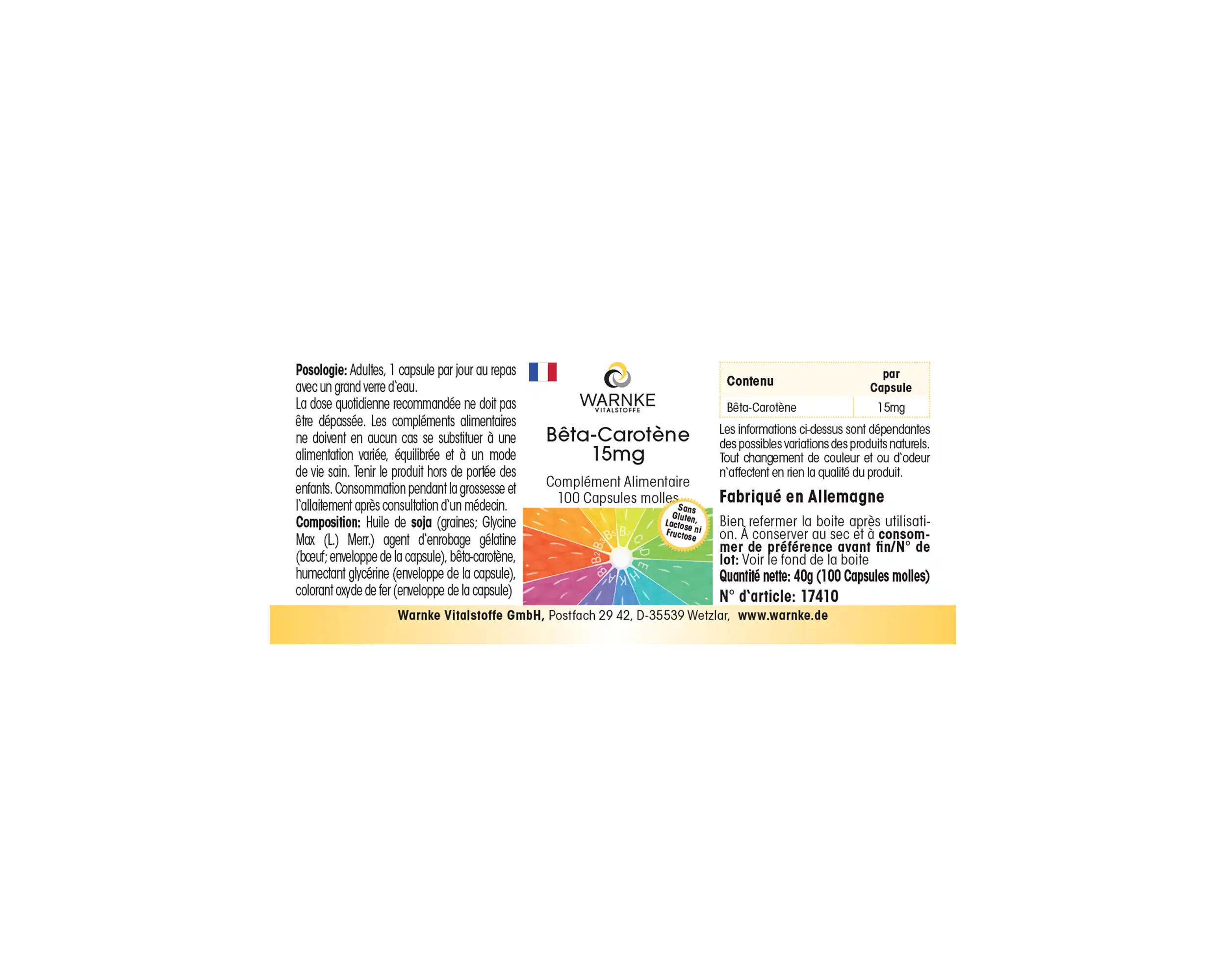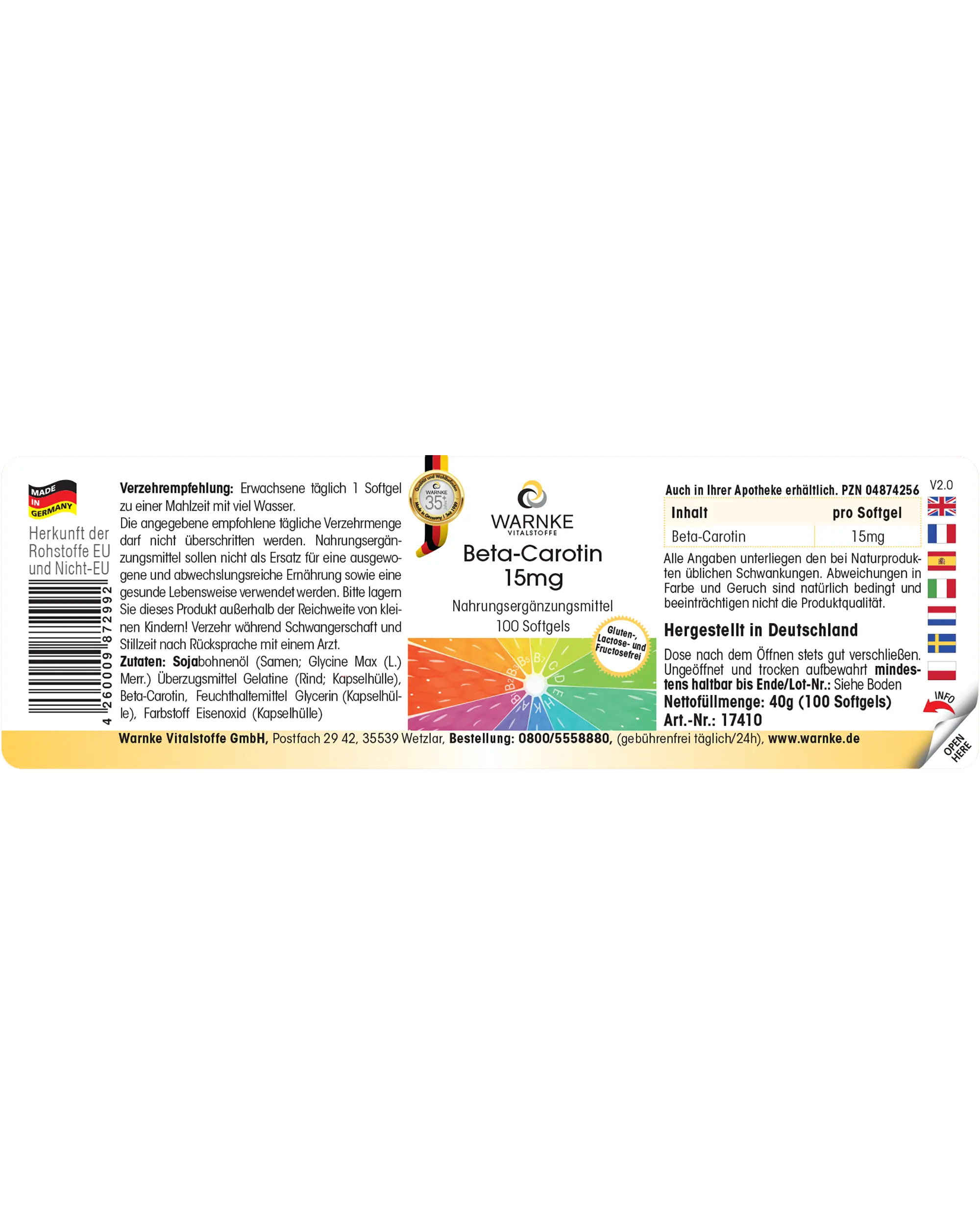Beta Carotin 15mg - 100 Softgels - Carotinoid, Provitamin A | Warnke Vitalstoffe