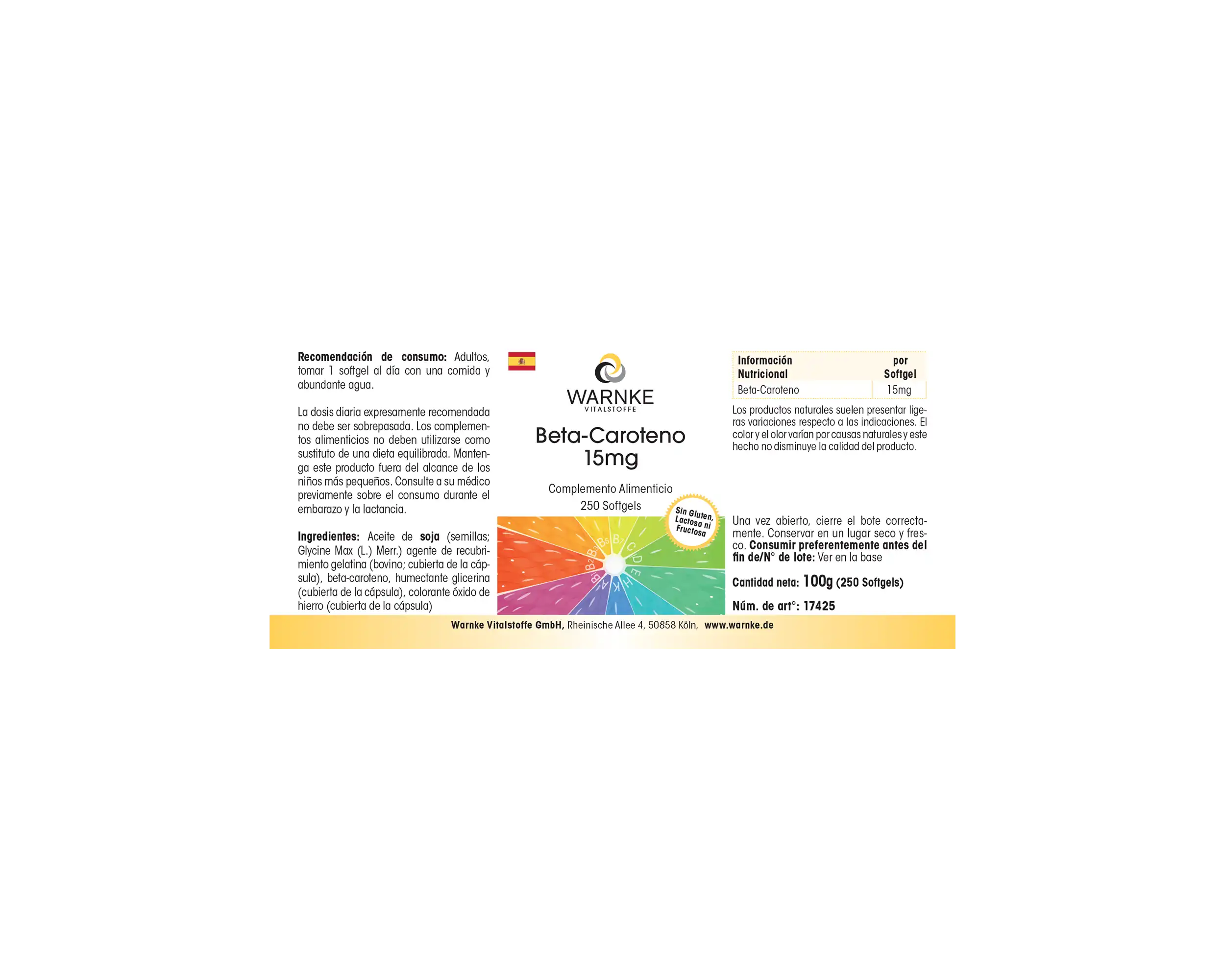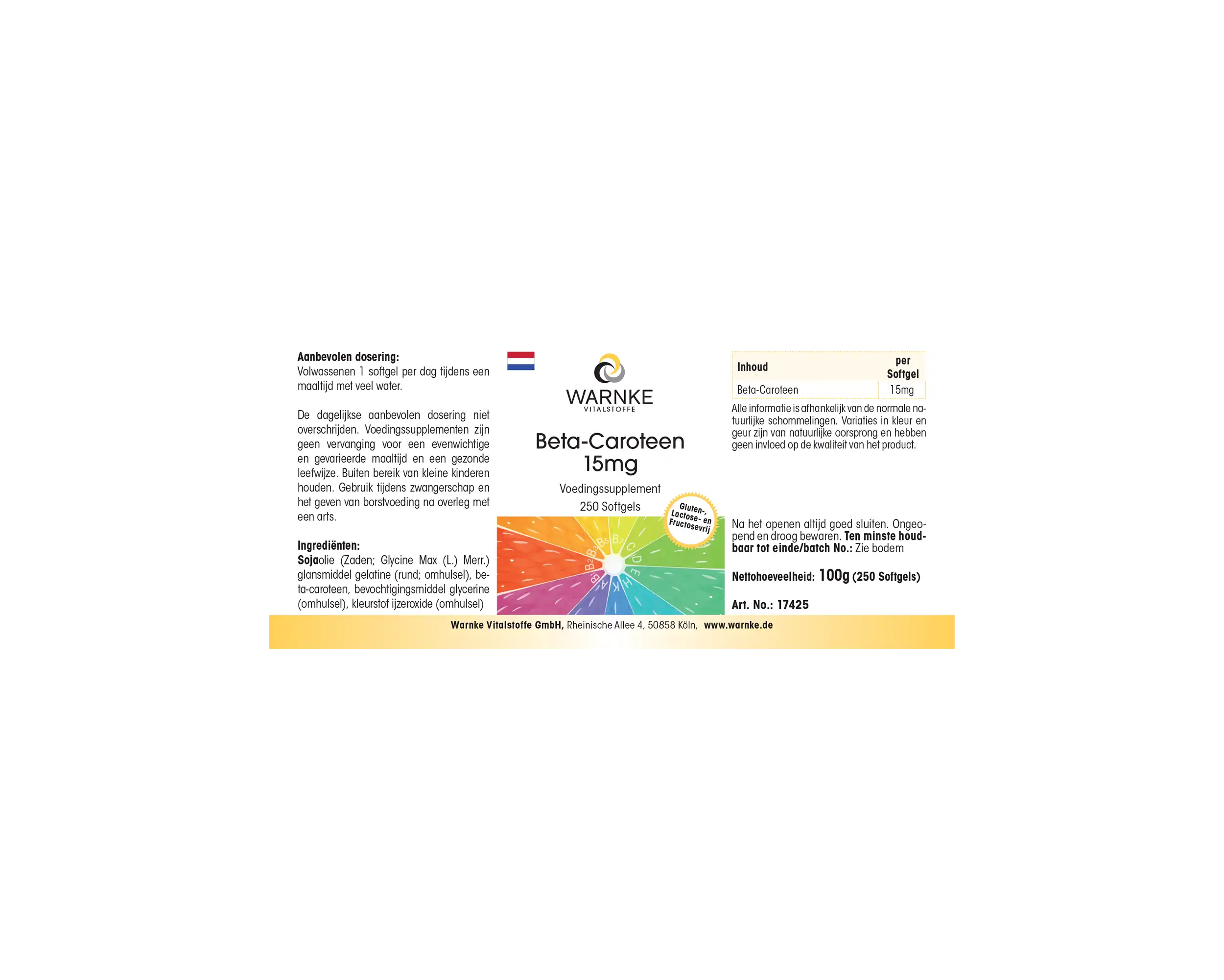 Produktinformationen "Beta-Carotin 15mg - 250 Softgels - Carotinoid, Provitamin A | Warnke Vitalstoffe"