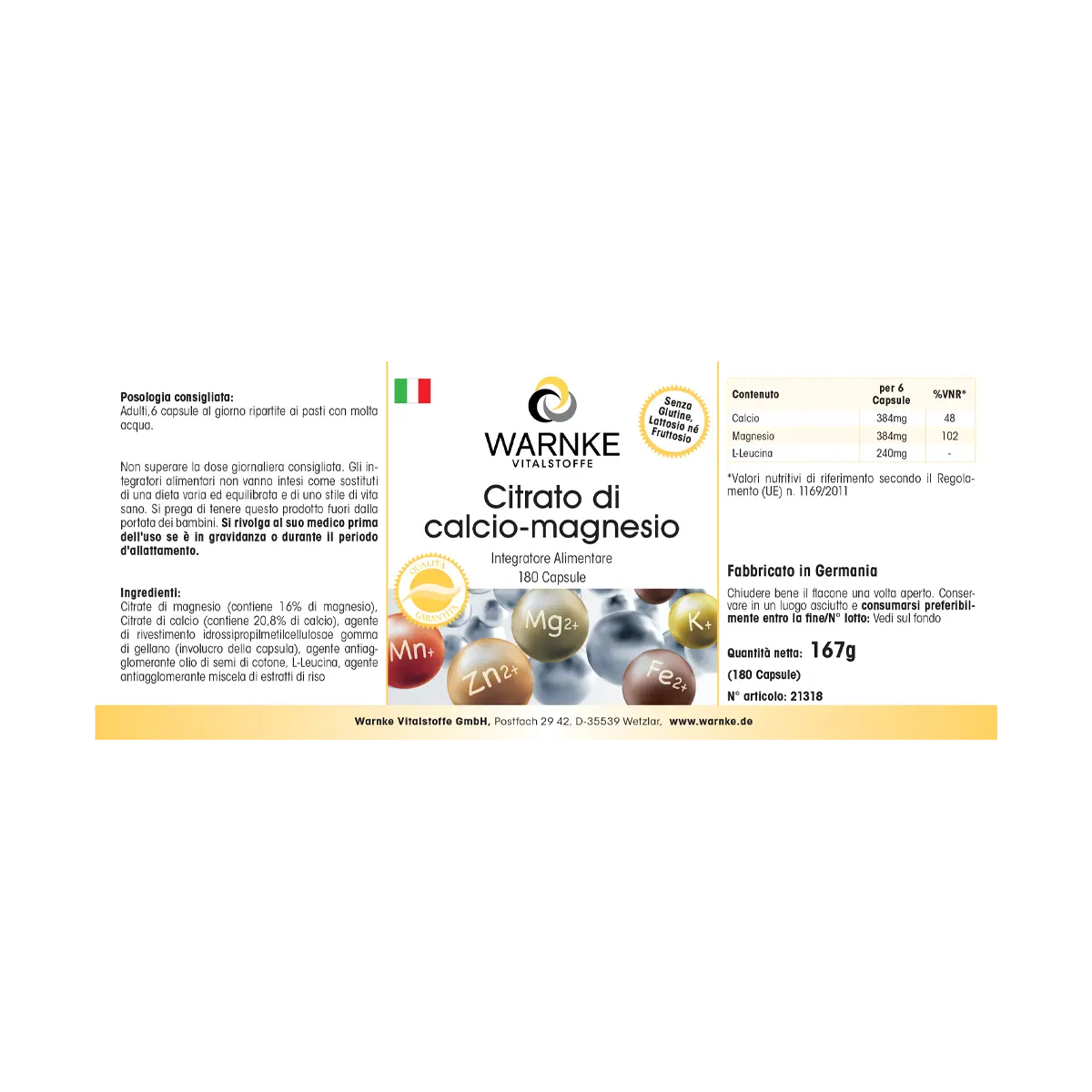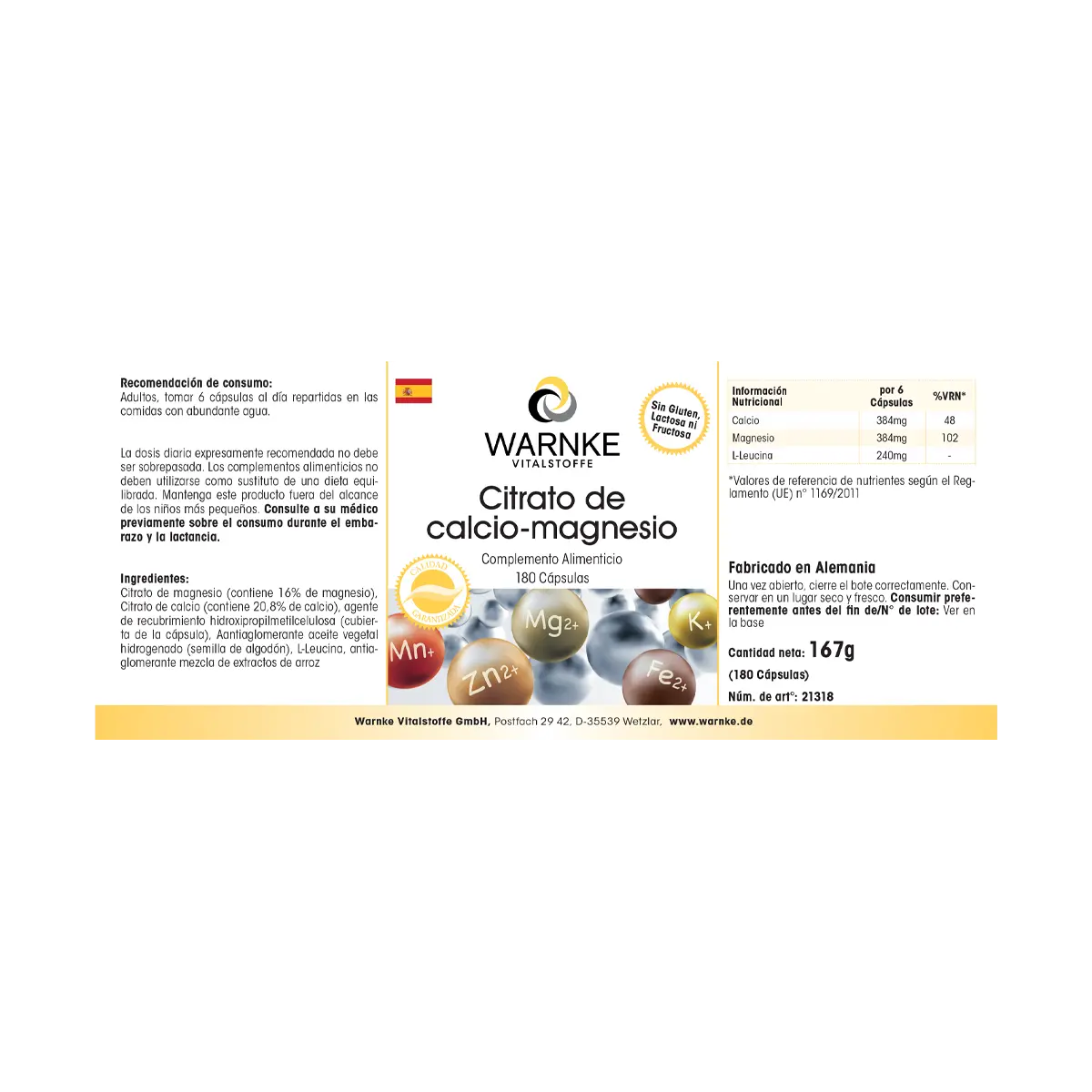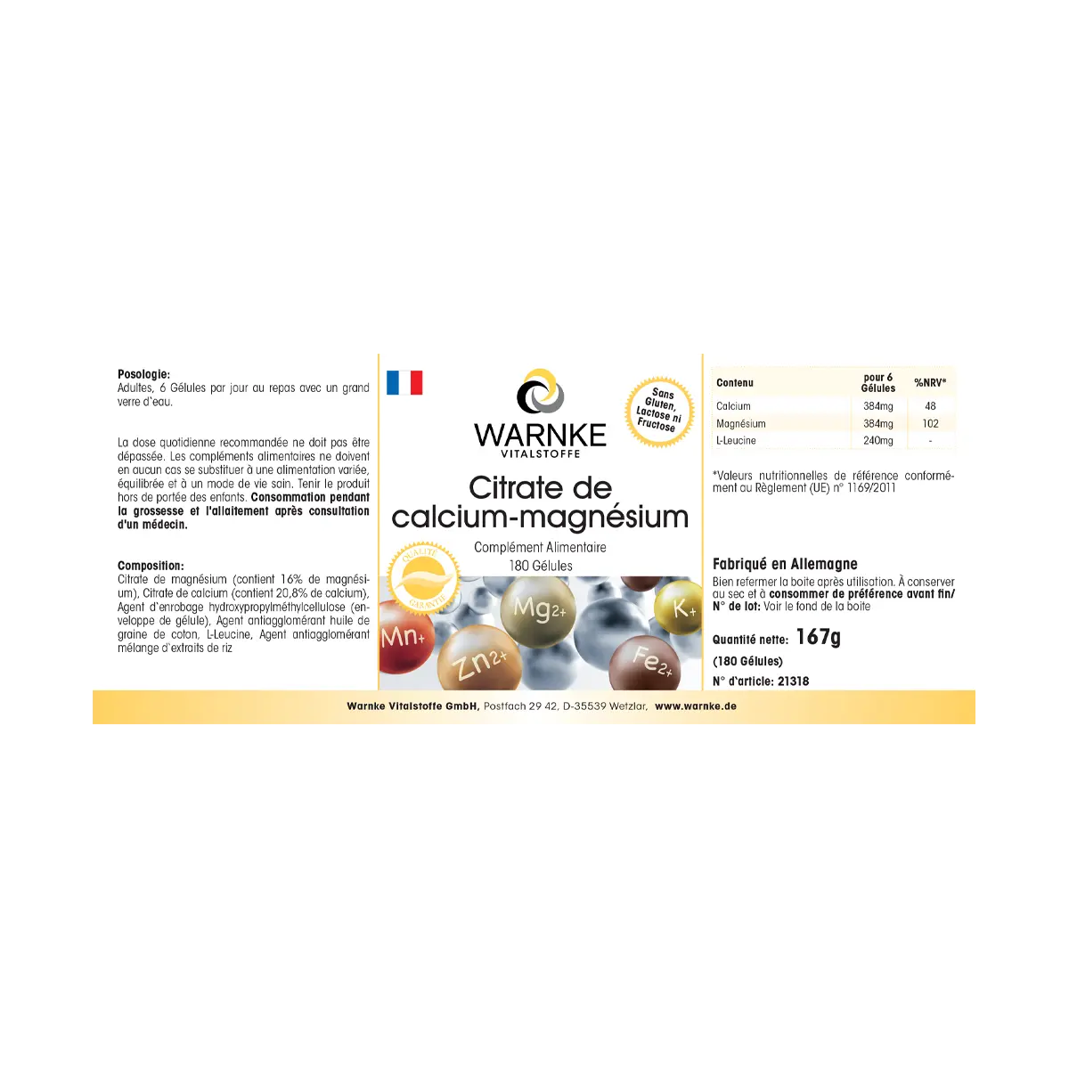 Produktinformationen "Calcium-Magnesiumcitrat - 180 Kapseln - für Knochen, Muskeln, Zähne uvm. | Warnke Vitalstoffe"