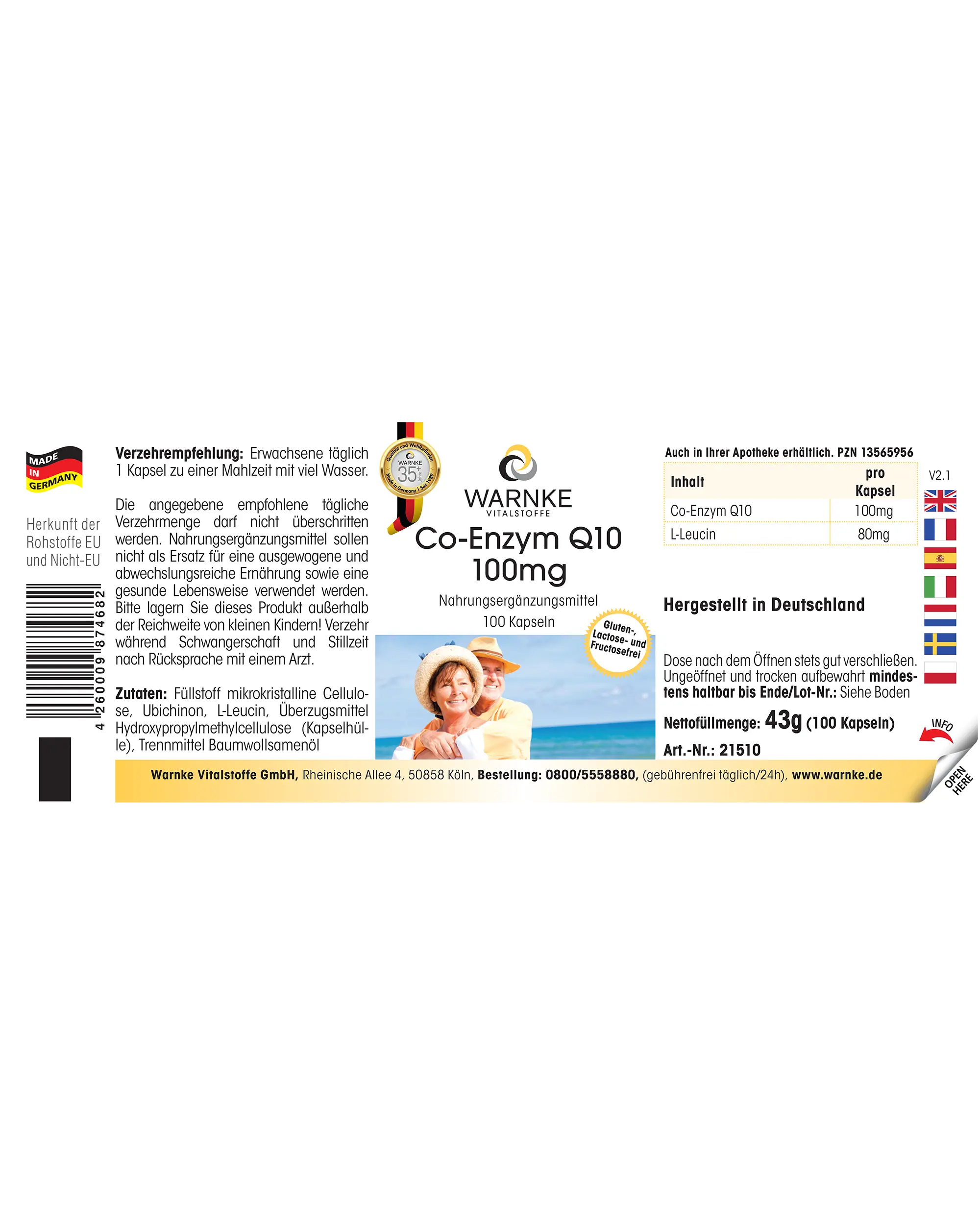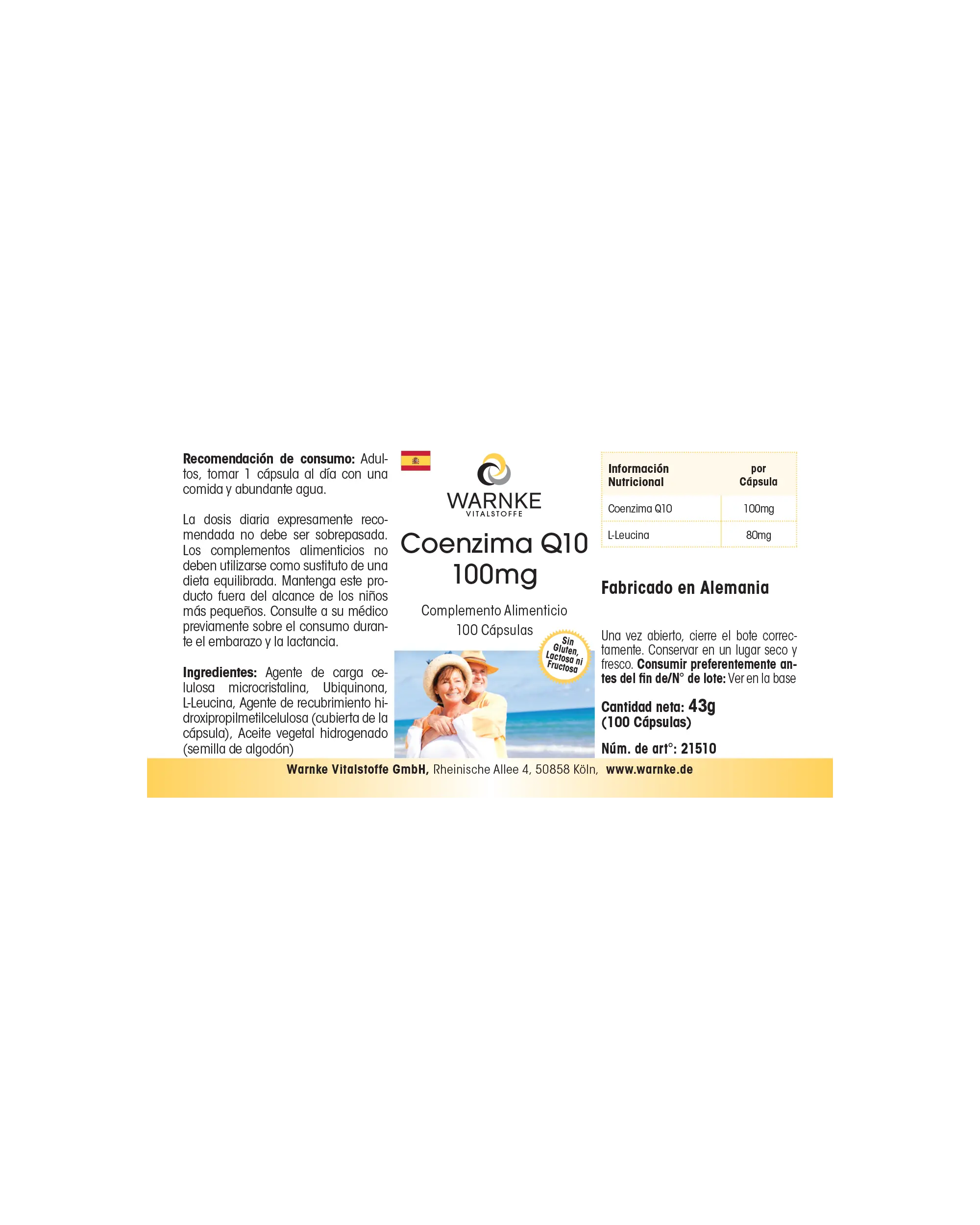 Produktinformationen "Co-Enzym Q10 100mg - 100 Kapseln - Ubichinon - Vegan | Warnke Vitalstoffe"