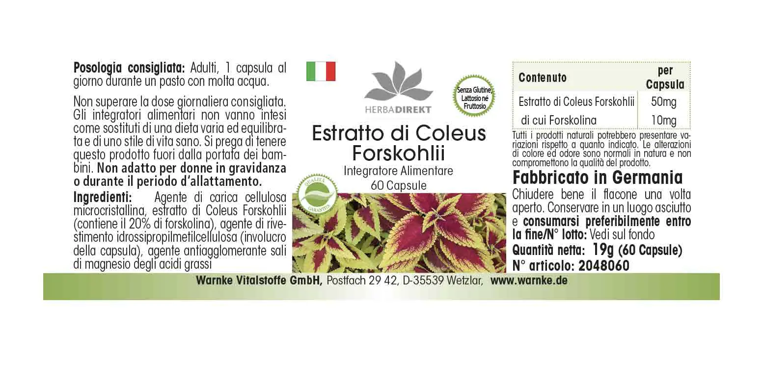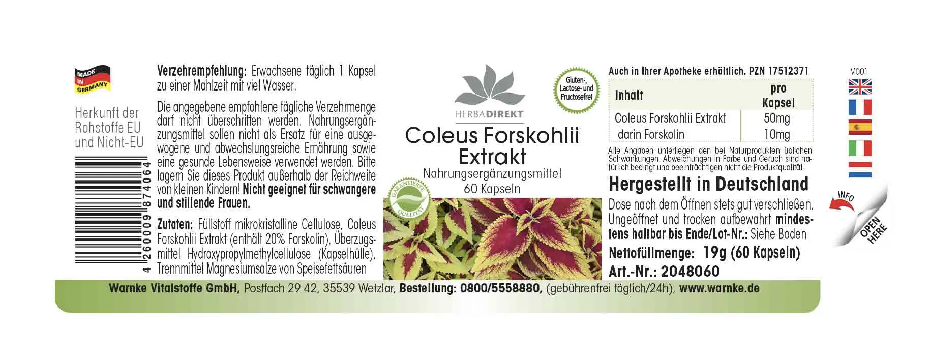 Produktinformationen "Coleus Forskohlii Extrakt 50mg - 60 Kapseln - Vegan | Warnke Vitalstoffe"