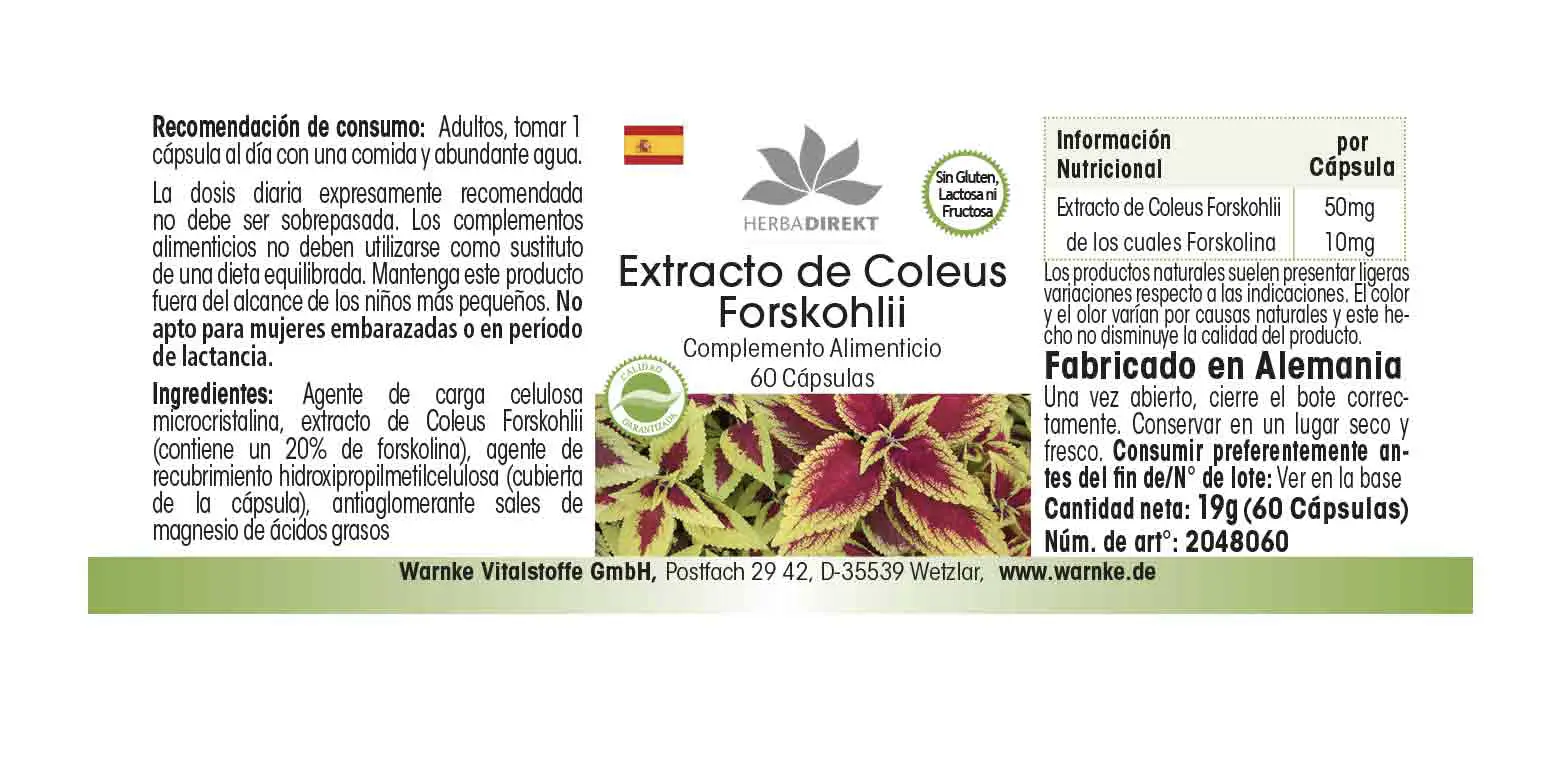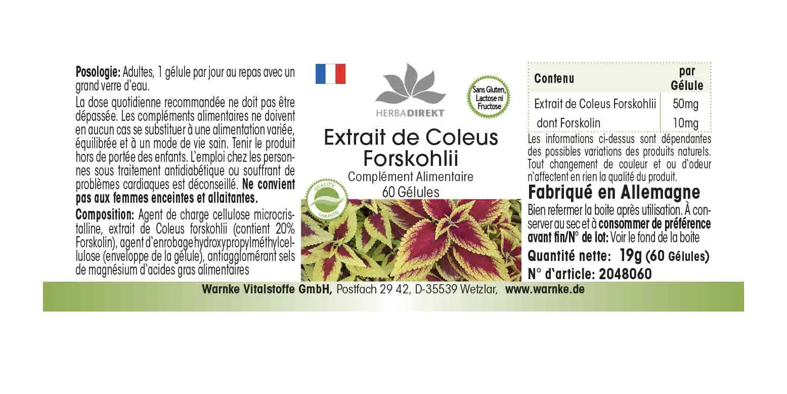 Coleus Forskohlii Extrakt 50mg - 60 Kapseln - Vegan | Warnke Vitalstoffe