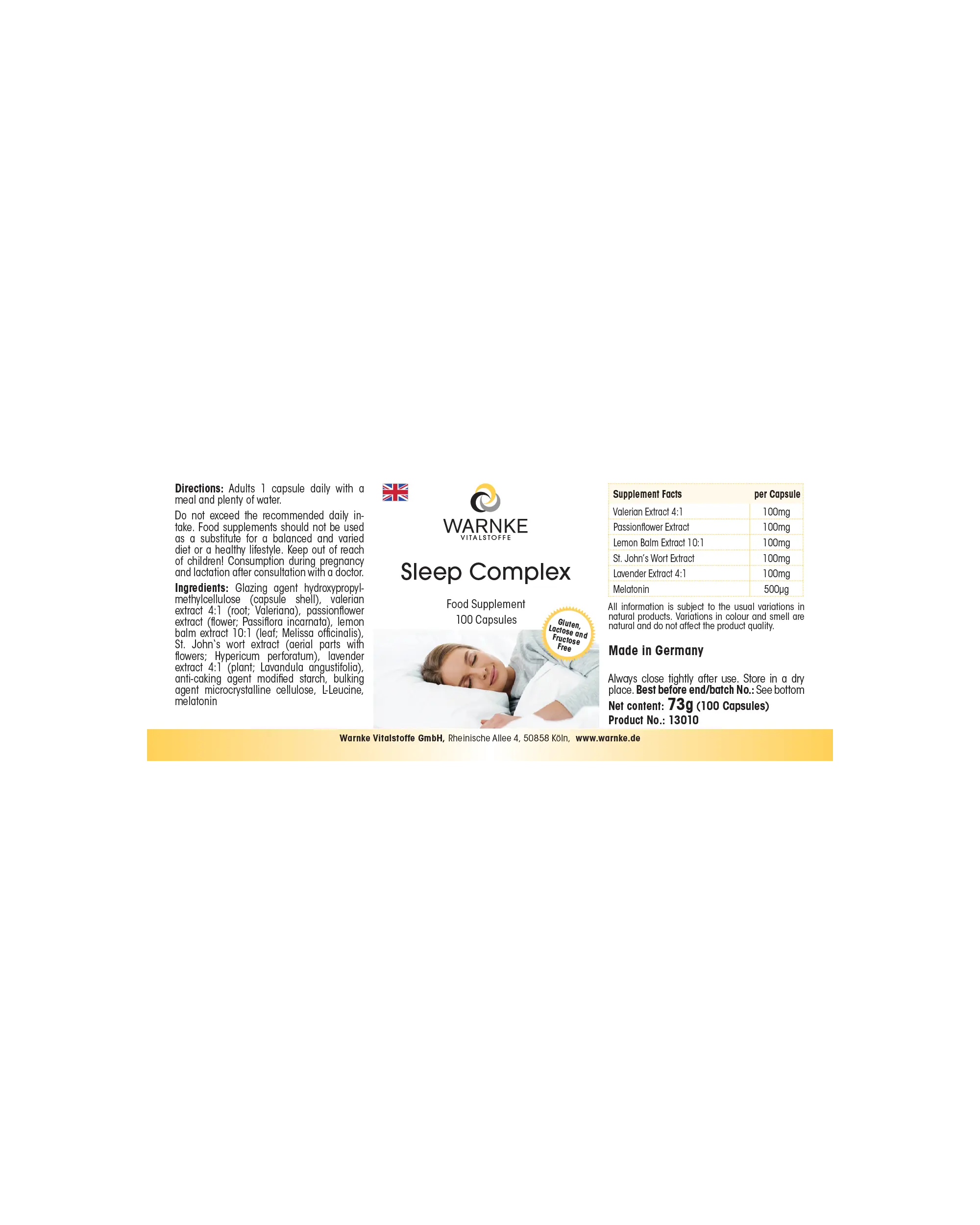 Produktinformationen "Einschlaf Komplex - 100 Kapseln - für eine kürzere Einschlafzeit - vegan | Warnke Vitalstoffe"
