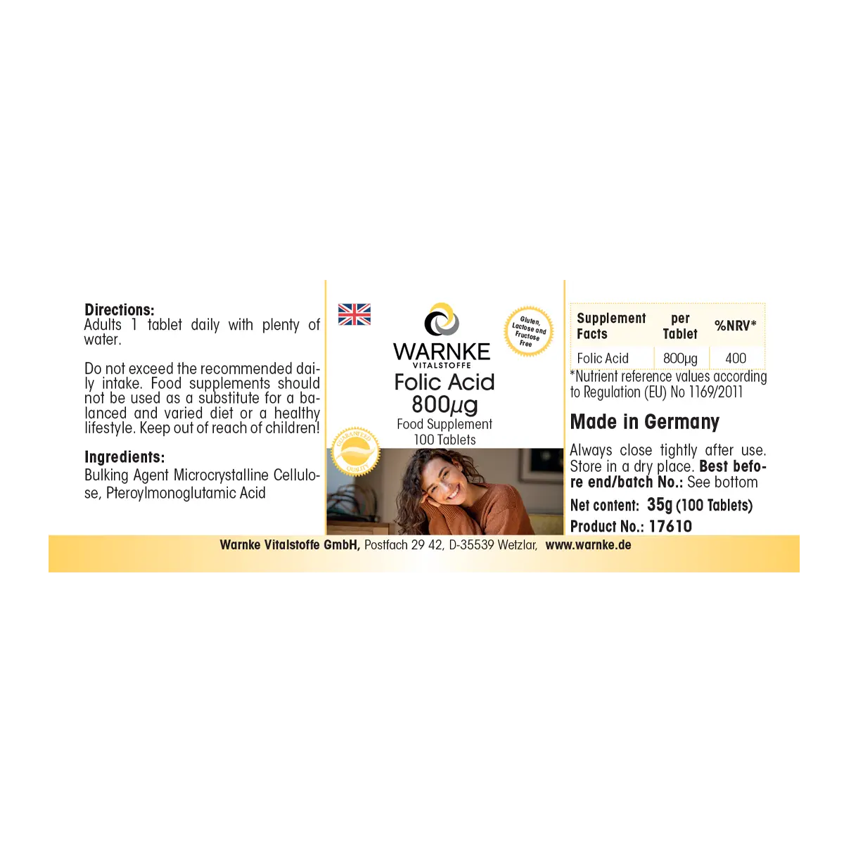 Folsäure 800µg - 100 Tabletten - für Schwangerschaft | Warnke Vitalstoffe