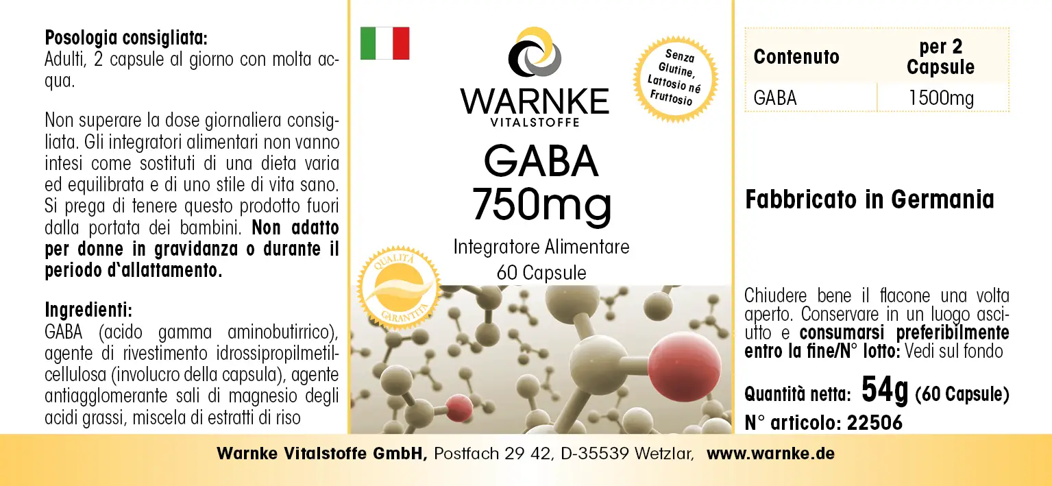 Produktinformationen "GABA 750mg - 60 Kapseln - Gamma-Aminobuttersäure - Vegan | Warnke Vitalstoffe"