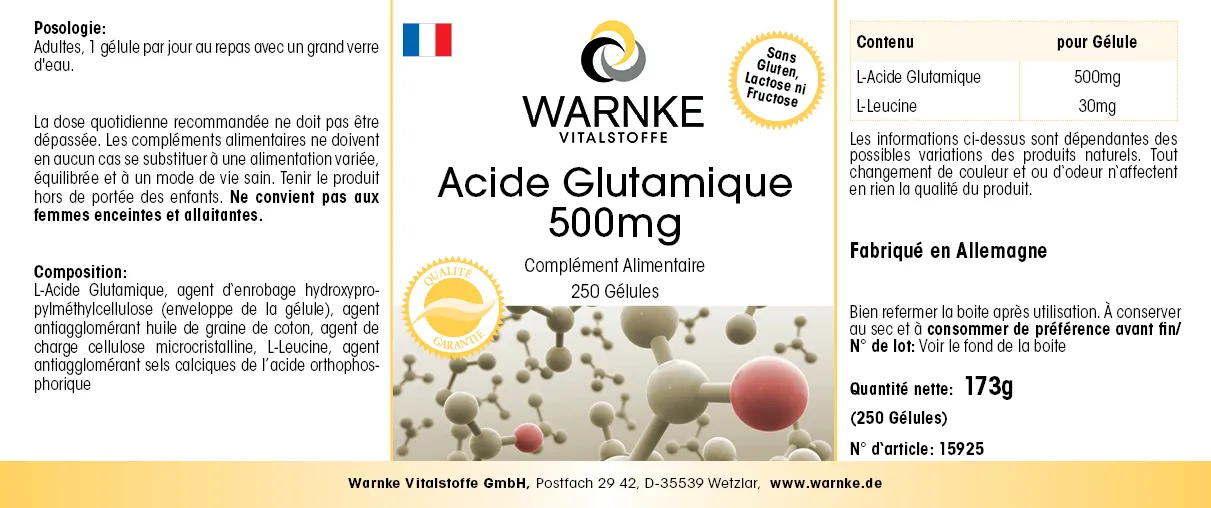 | Glutaminsäure / Glutamic acid / Acide glutamique / Ácido glutámico / Acido glutammico | 500mg |