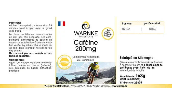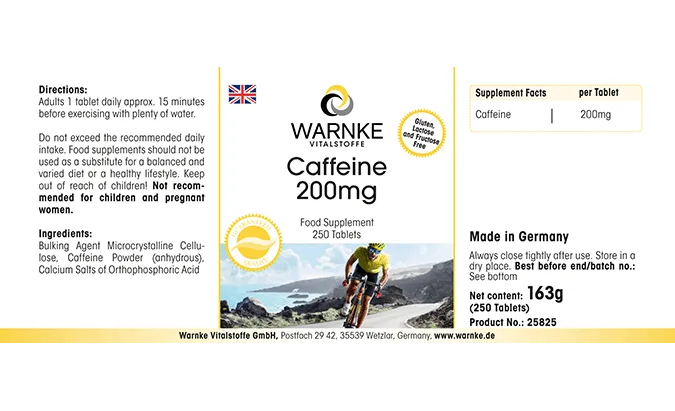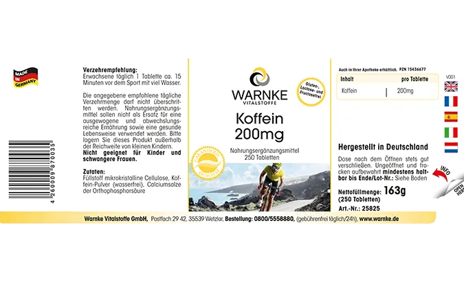 Produktinformationen "Koffein 200mg - 250 Tabletten - Hochdosiert & Vegan | Warnke Vitalstoffe"