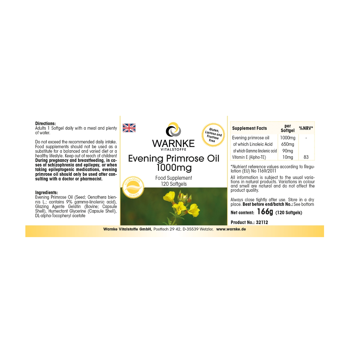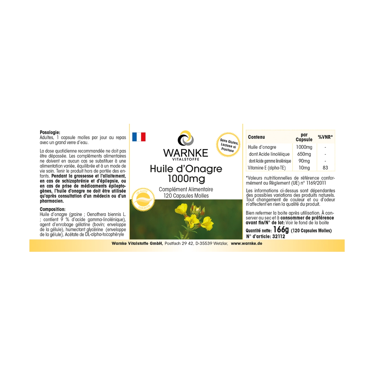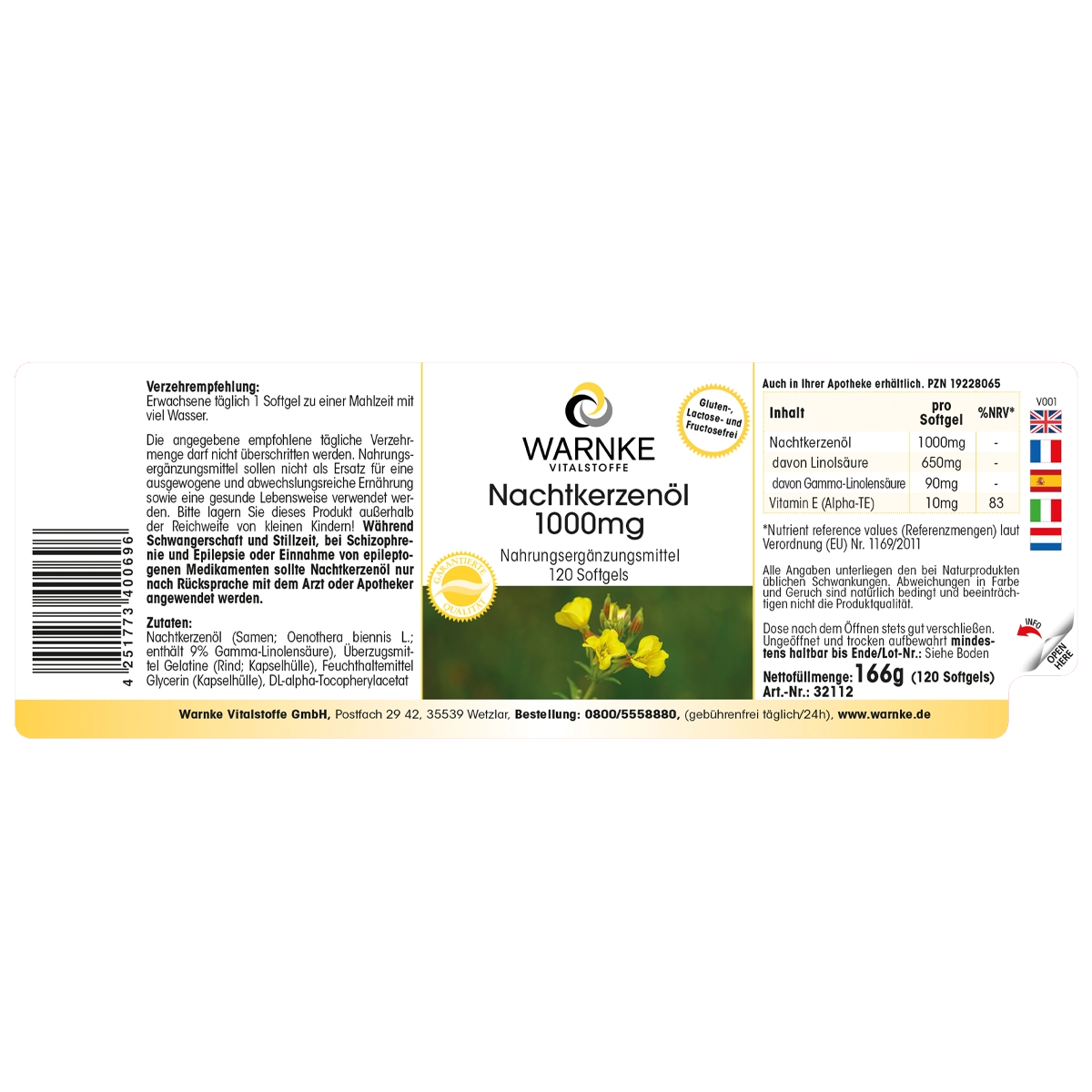 Produktinformationen "Nachtkerzenöl 1000mg - 120 Softgels - mit Vitamin E - für Zellschutz | Warnke Vitalstoffe"