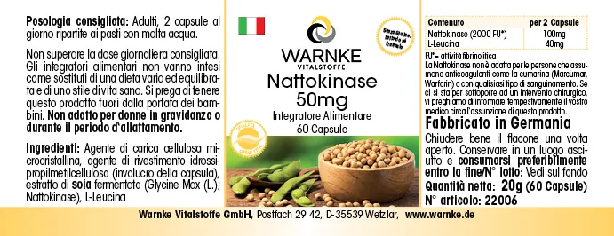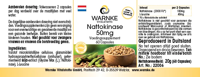 Produktinformationen "Nattokinase 50mg - 60 Kapseln - Vegan | Warnke Vitalstoffe"