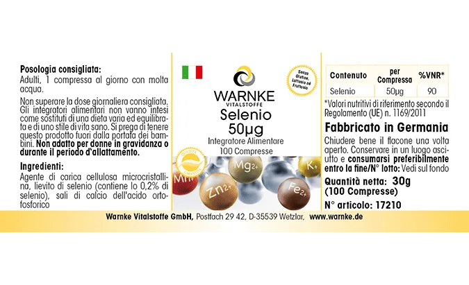 Selen 50µg - 100 Tabletten - für Schilddrüse, Zellschutz uvm. - Vegan | Warnke Vitalstoffe
