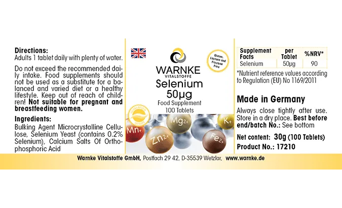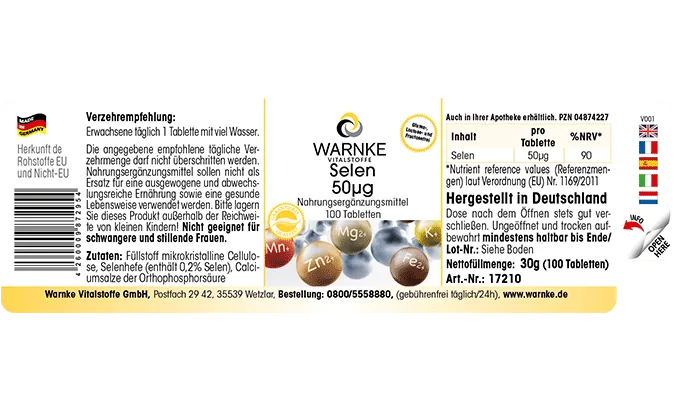 Produktinformationen "Selen 50µg - 100 Tabletten - für Schilddrüse, Zellschutz uvm. - Vegan | Warnke Vitalstoffe"