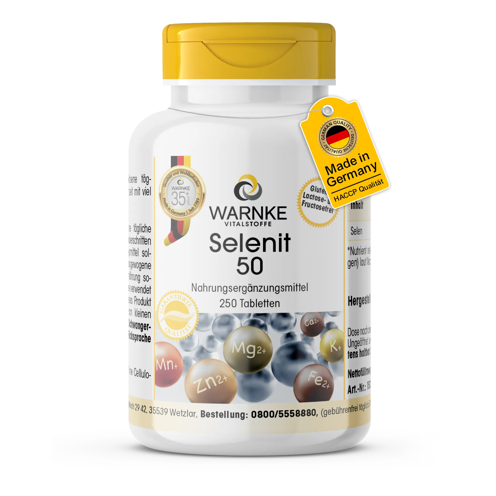 Produktinformationen "Selenit 50µg - 250 Tabletten - Schluckfreundlich - Für Schilddrüse, Zellschutz uvm. - Vegan | Warnke Vitalstoffe"