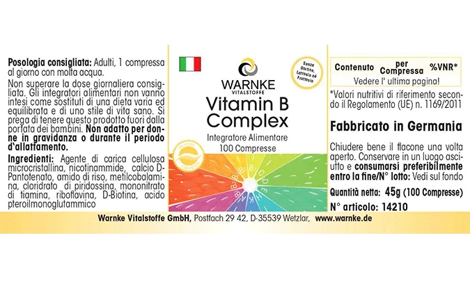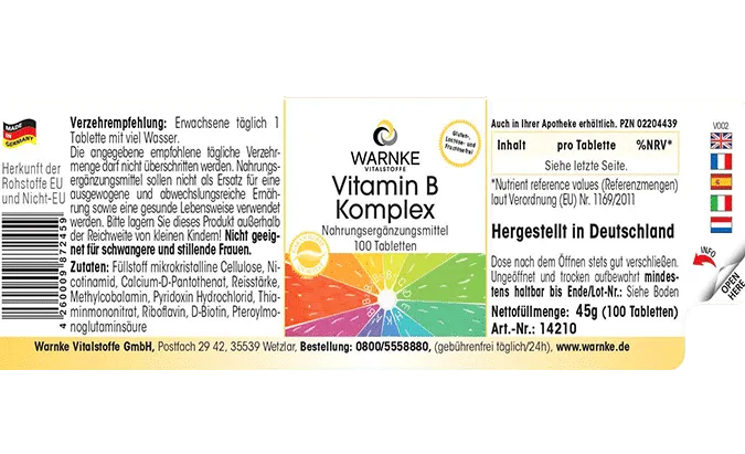 Produktinformationen "Vitamin B Komplex - 100 Tabletten - für Immunsystem, Haar, gegen Müdigkeit uvm. - Vegan | Warnke Vitalstoffe"