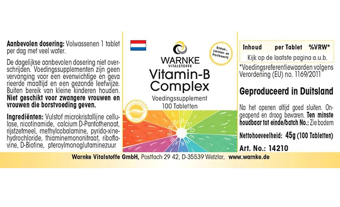 Vitamin B Komplex - 100 Tabletten - für Immunsystem, Haar, gegen Müdigkeit uvm. - Vegan | Warnke Vitalstoffe