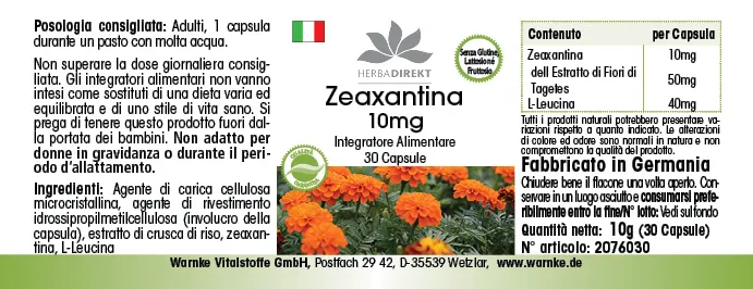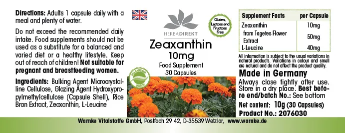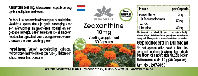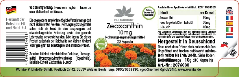 Produktinformationen "Zeaxanthin 10mg - 30 Kapseln - Schluckfreundlich | Warnke Vitalstoffe"