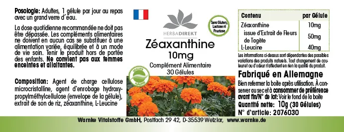 | Zeaxanthin / Zéaxanthine / Zeaxantina | 10mg |
