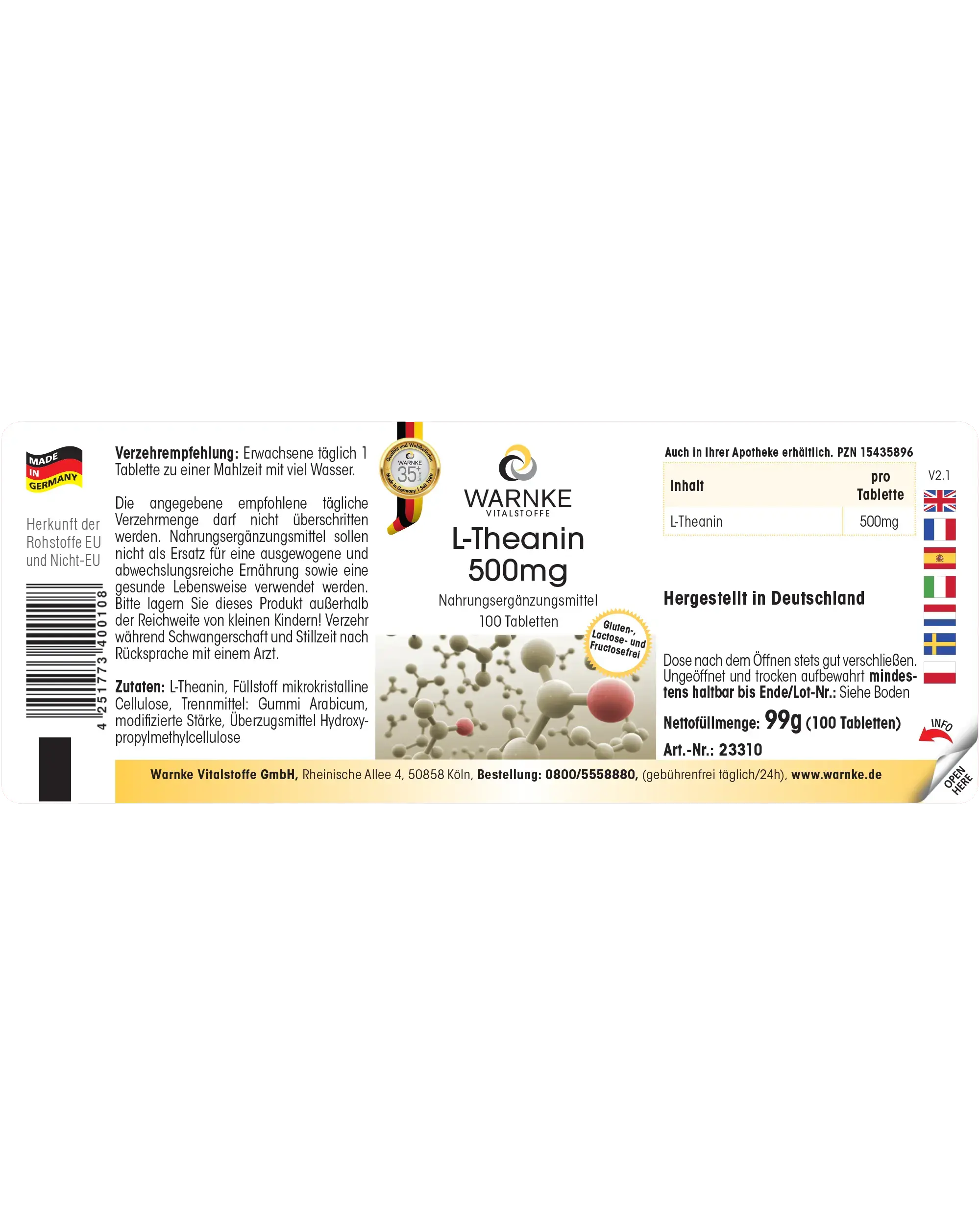 | L-Theanin / L-Theanine / L-Théanine / L-Teanina | 500mg |