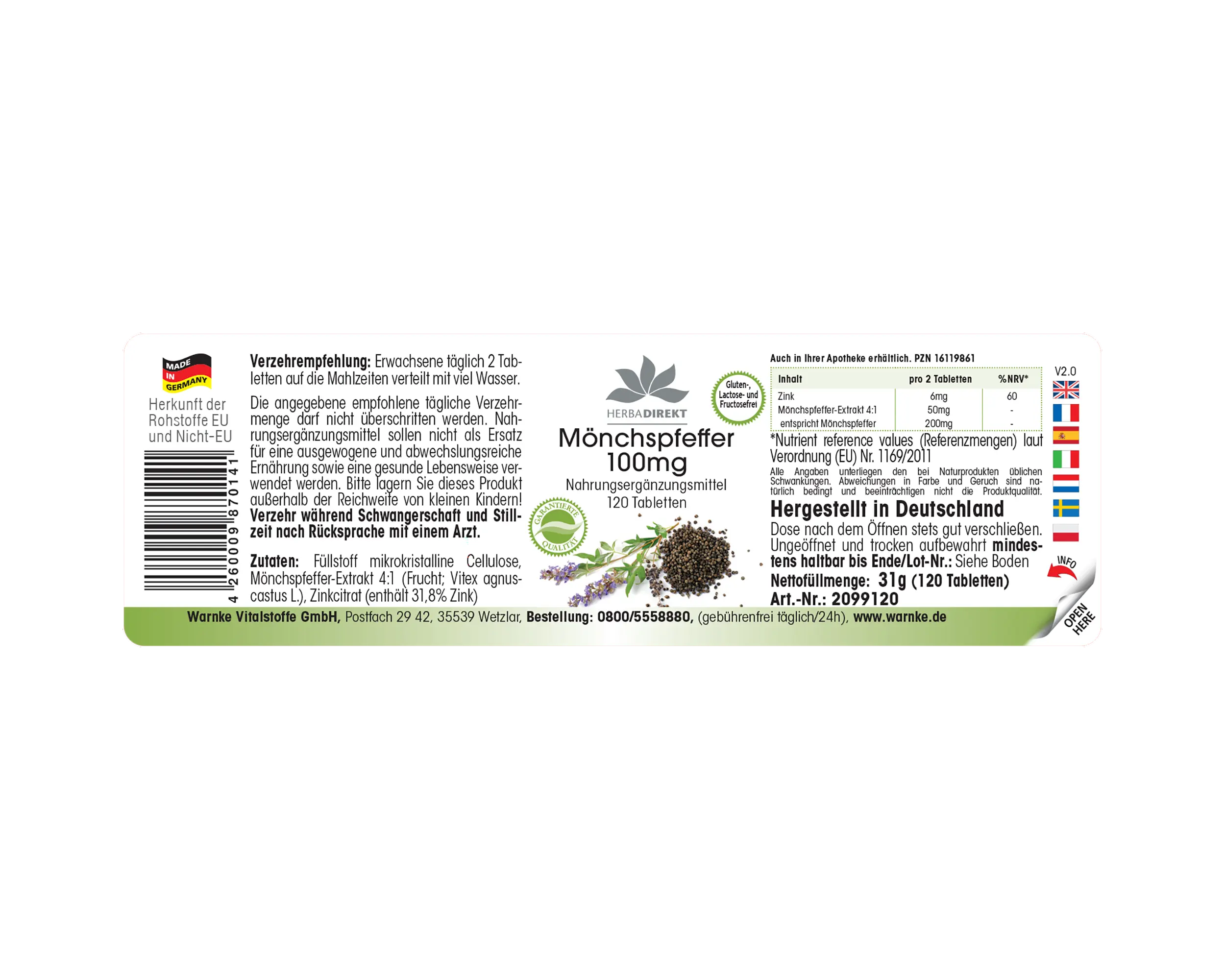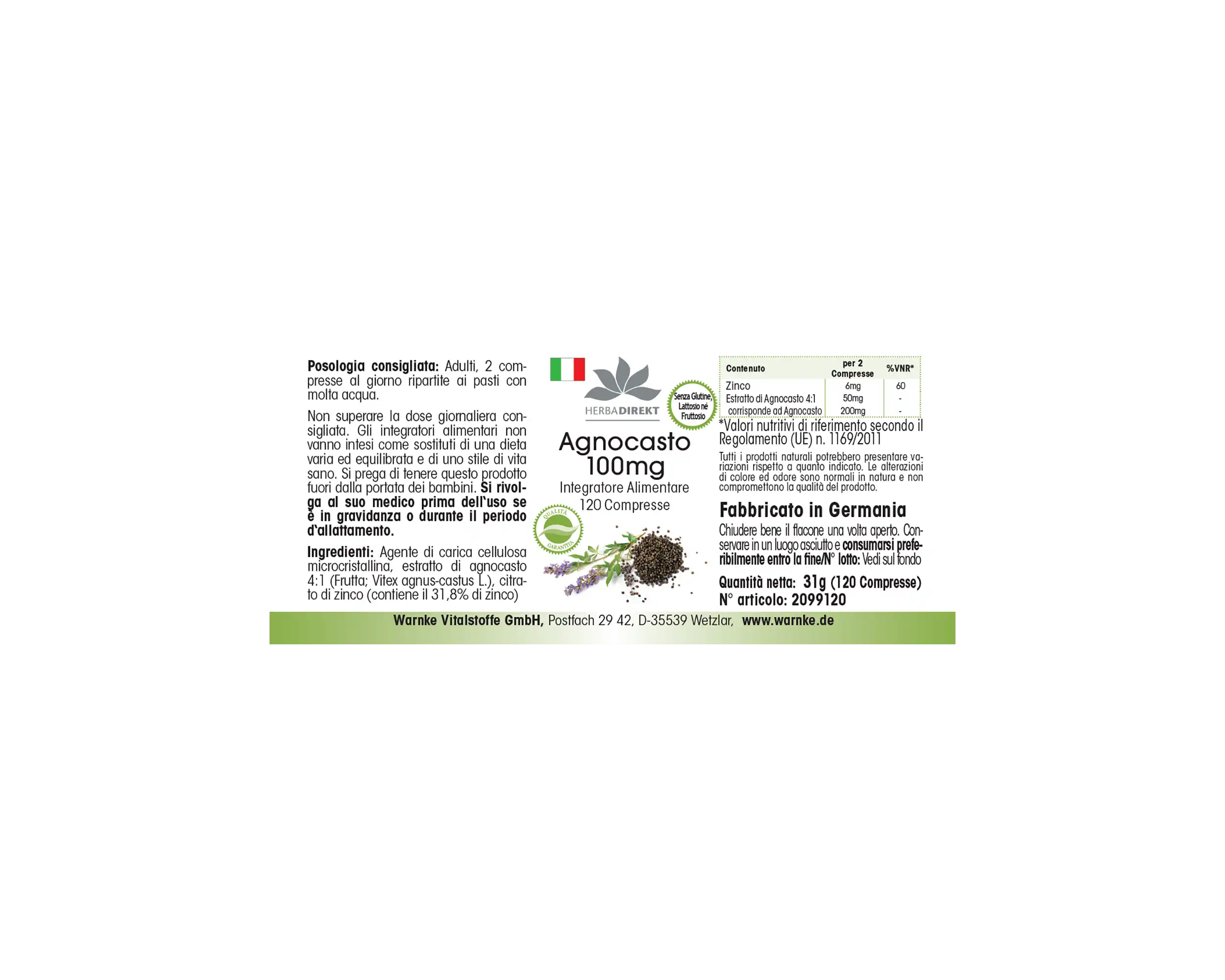 Agente di carica cellulosa microcristallina, estratto di Agnocasto 4:1 (Vitex agnus-castus L.), citrato di zinco (contiene il 31,8% di zinco)