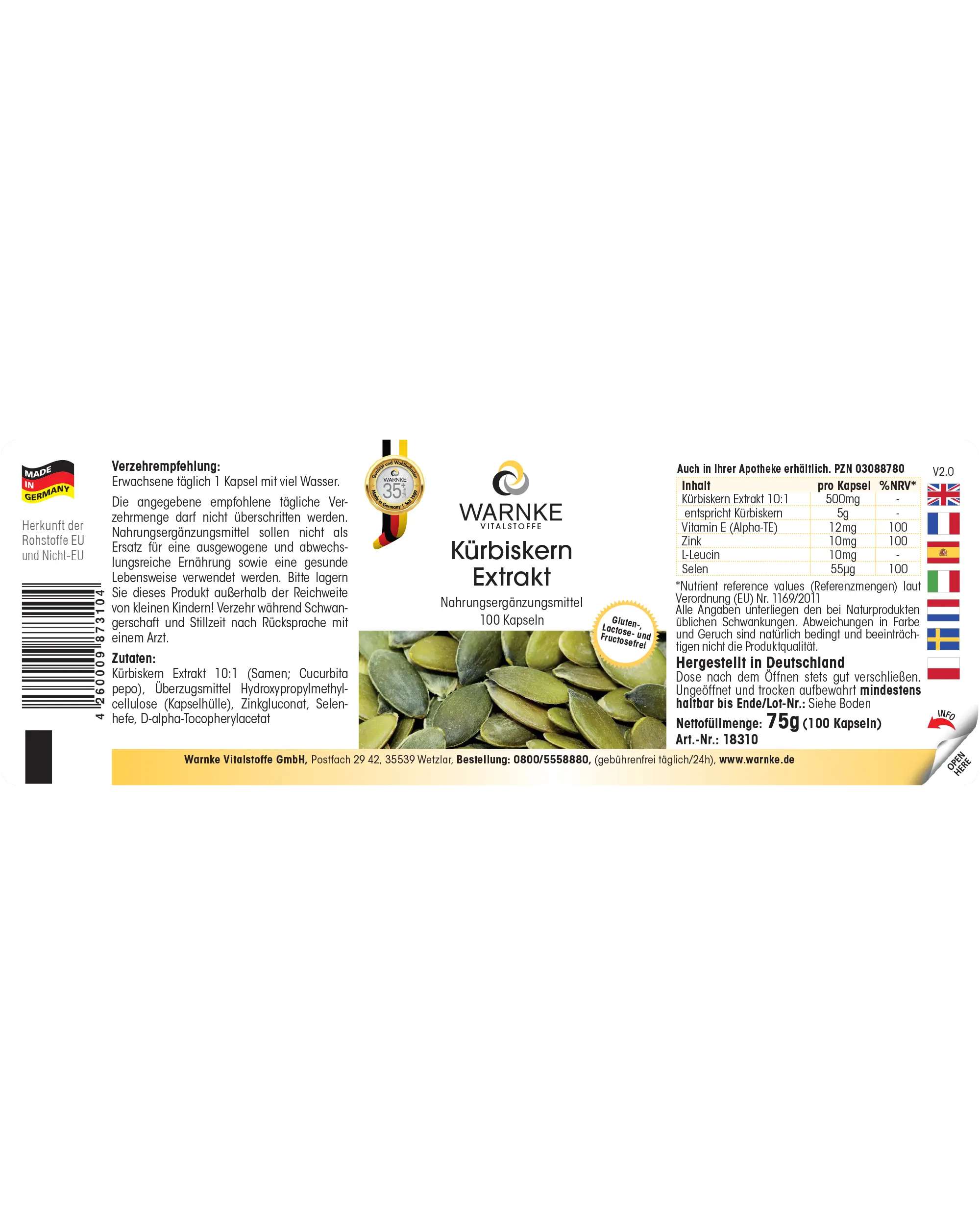Ein weiterer Pluspunkt von Kürbiskern-Extrakt ist, dass es vegan und glutenfrei ist, was es zu einer guten Wahl für alle macht, die Diätvorschriften einhalten müssen.