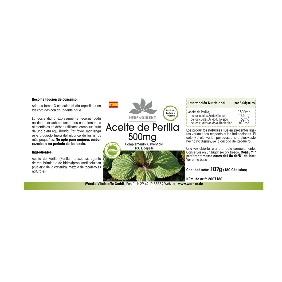 | Perilla-Öl / Perilla Oil / Huile de Perilla/ Aceite de Perilla / Olio di Perilla | 1500mg |