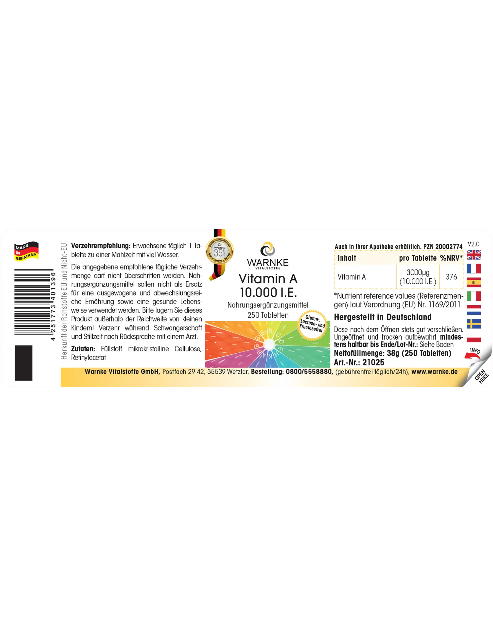 Vitamina A 10.000 UI – Retinolo ad alto dosaggio | Warnke Vitalstoffe