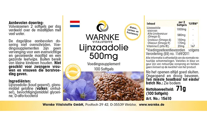 Product information "Lijnzaadolie 500mg 100 Softgels"